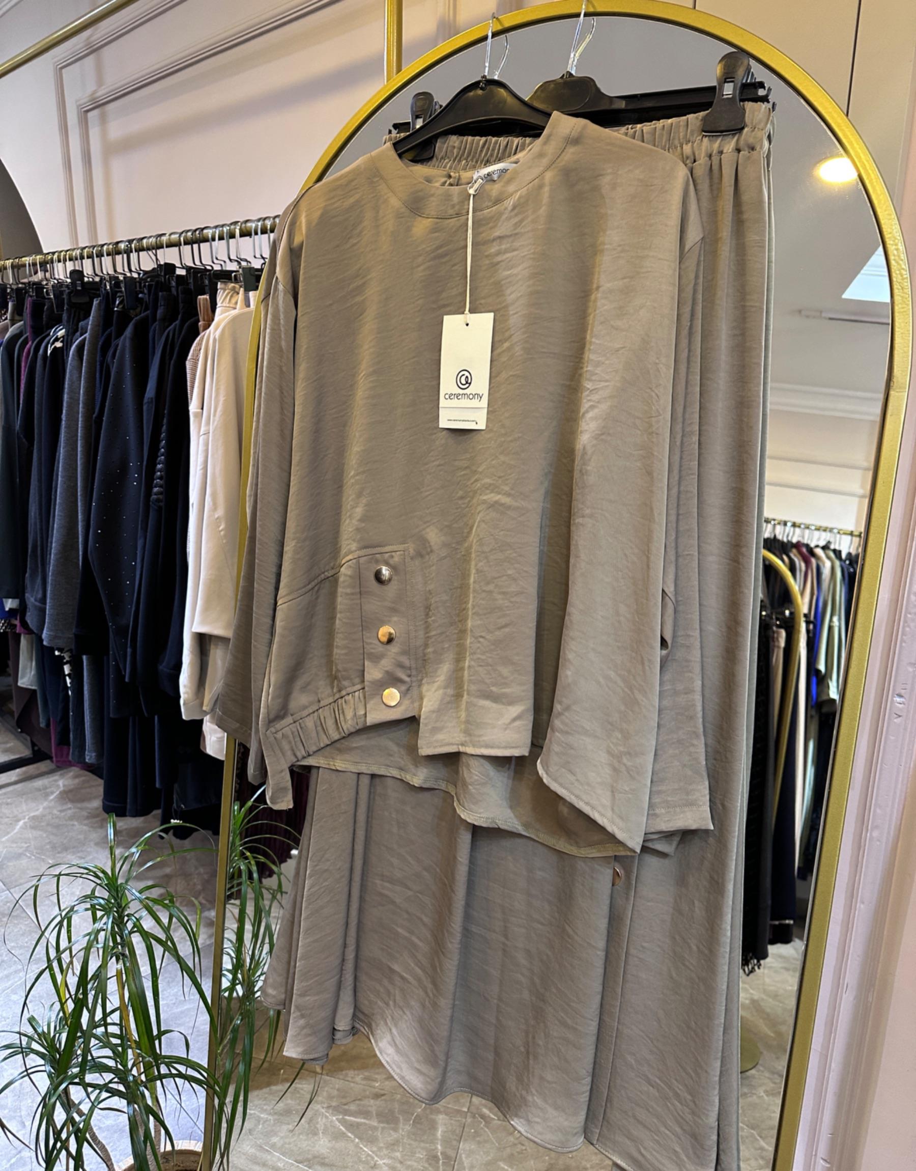 CEREMONY BLUZU VE ETEĞİ ÇIT ÇIT AKSESUAR DETAYLI SAPPHİRE TAKIM | Ceremony