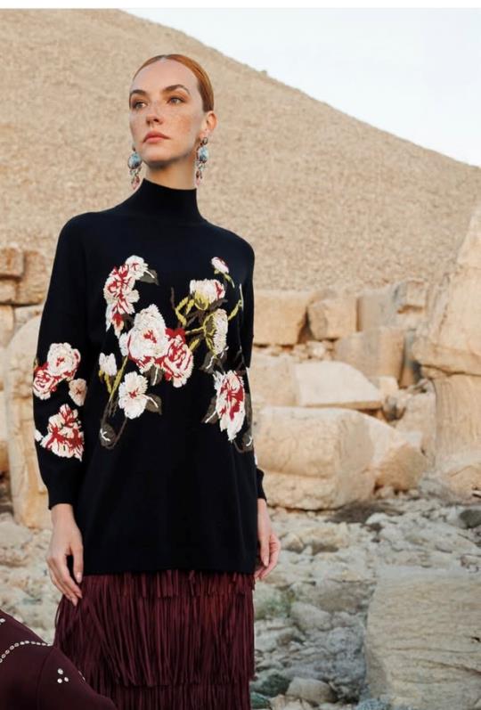 GHİSA GÜL İŞLMELİ TRİKO TUNİK Siyah