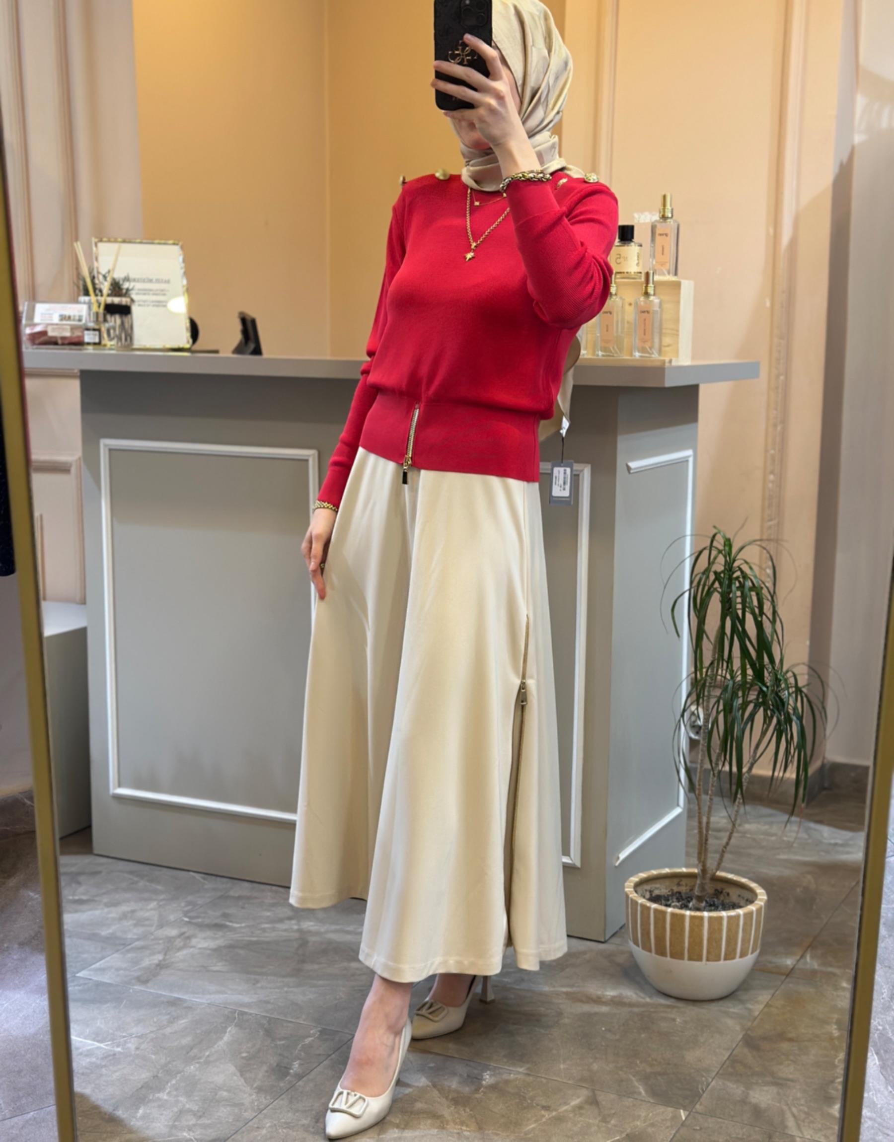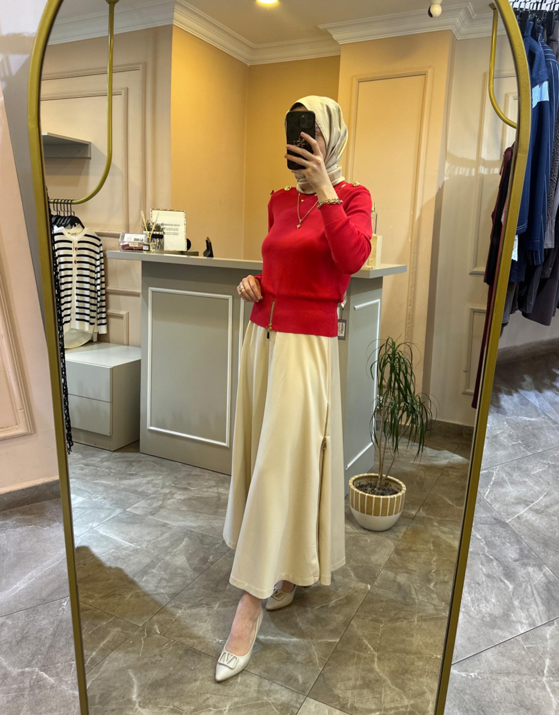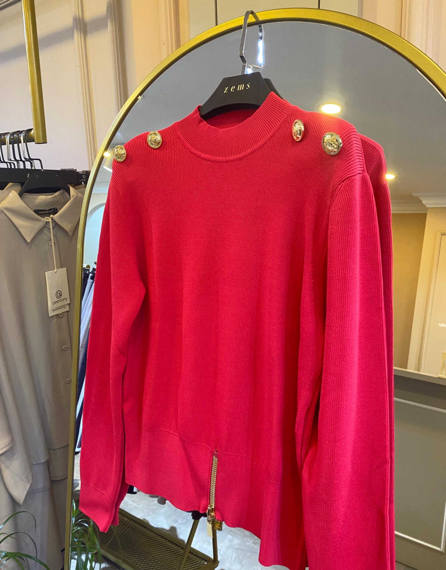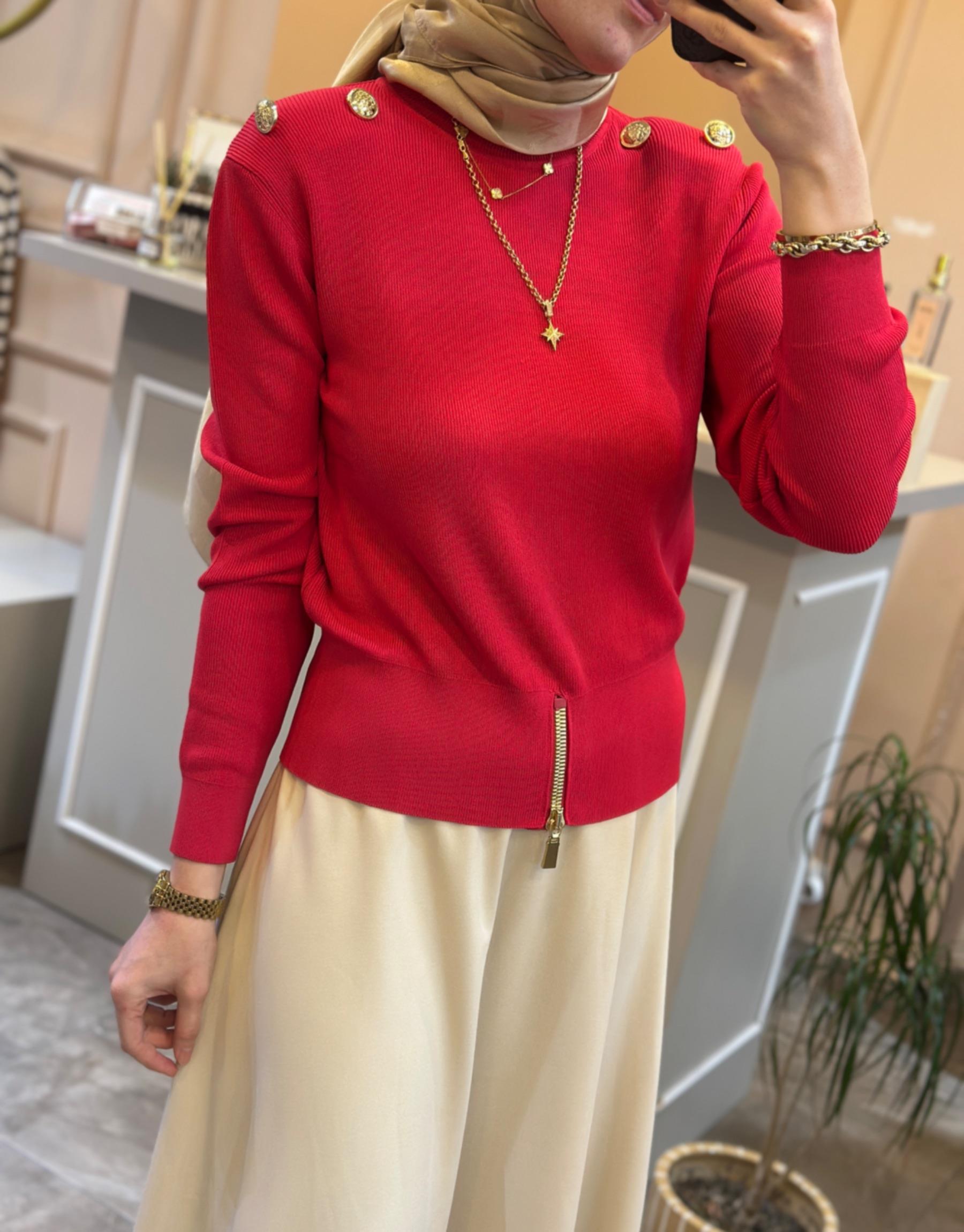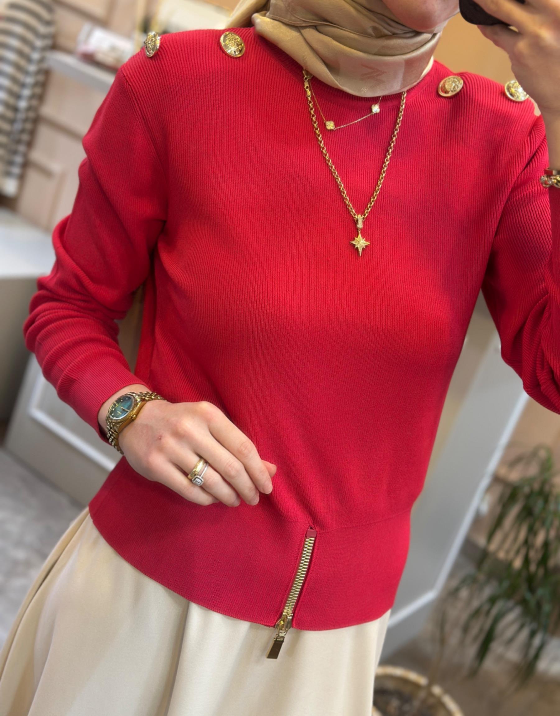 GHİSA YANDAN BROŞLU TRİKO BLUZ Kırmızı