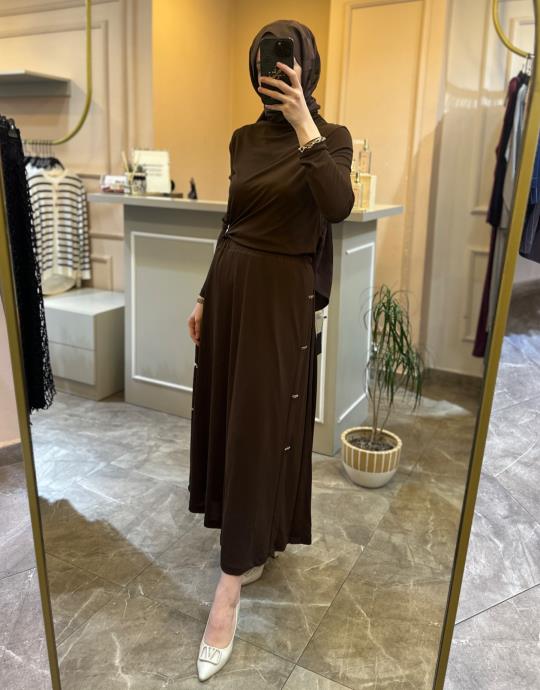 GHİSA ÜSTÜ YANDAN MODELLİ ETEKLİ TAKIM Kahve