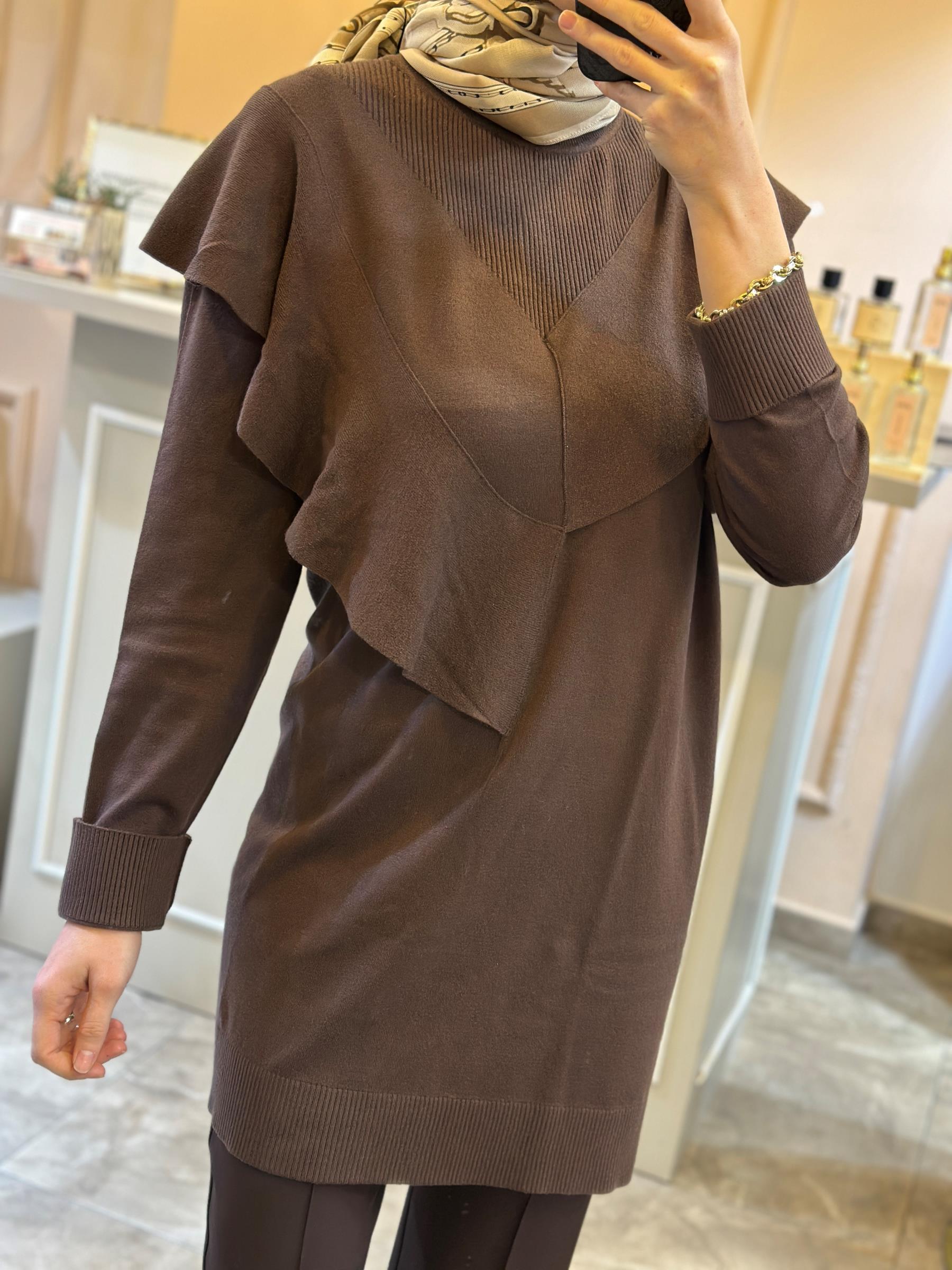 GHİSA FIRFIRLI TRİKO TUNİK Acı Kahve