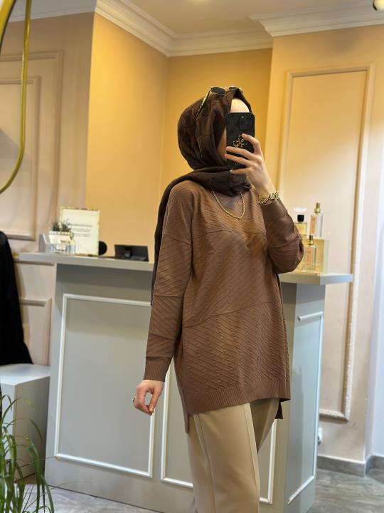 GHİSA BALIKÇI YAKA TRİKO TUNİK Kahve