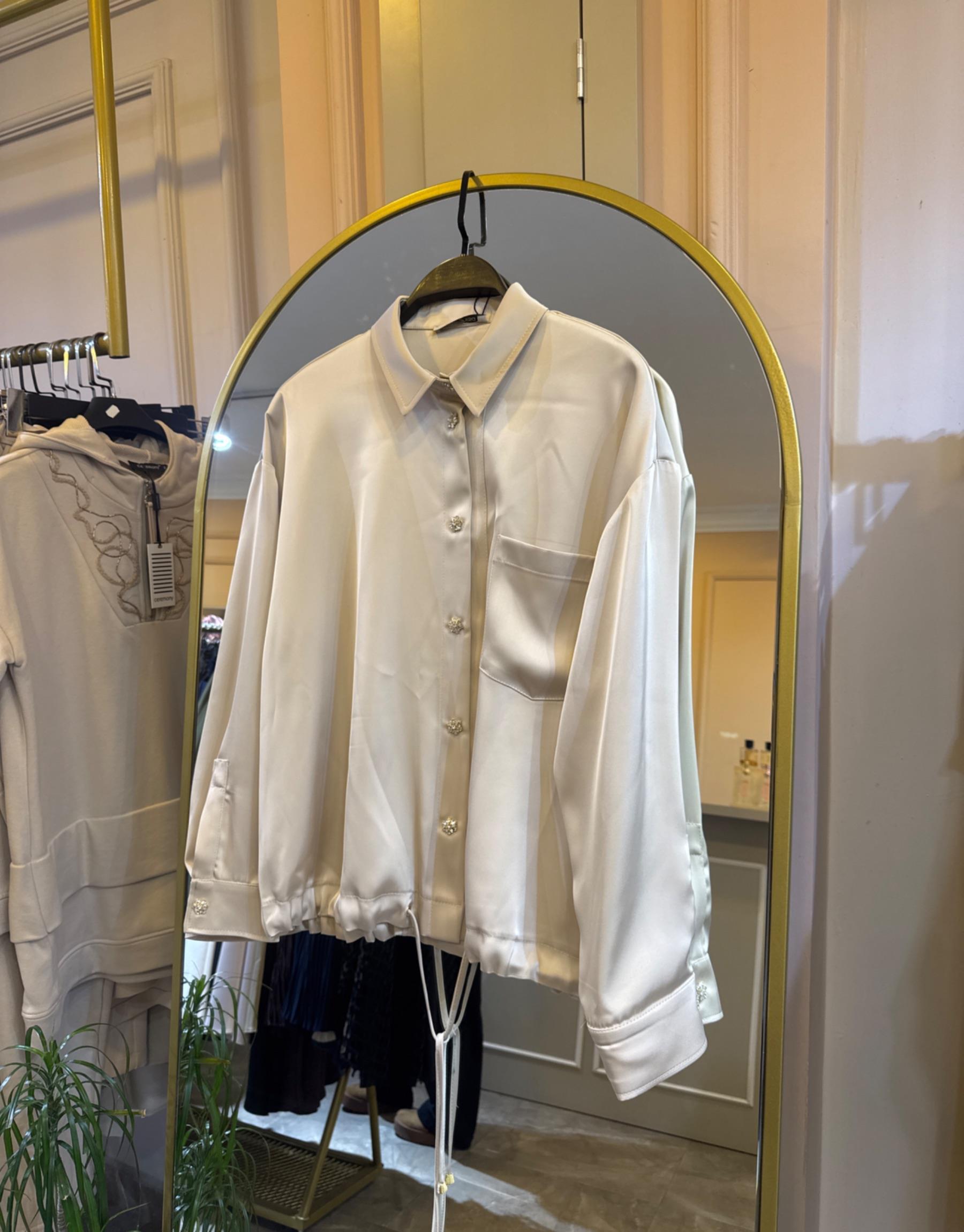 GHİSA YANDAN BAĞLAMALI KUŞ DETAYLI GÖMLEK Ekru