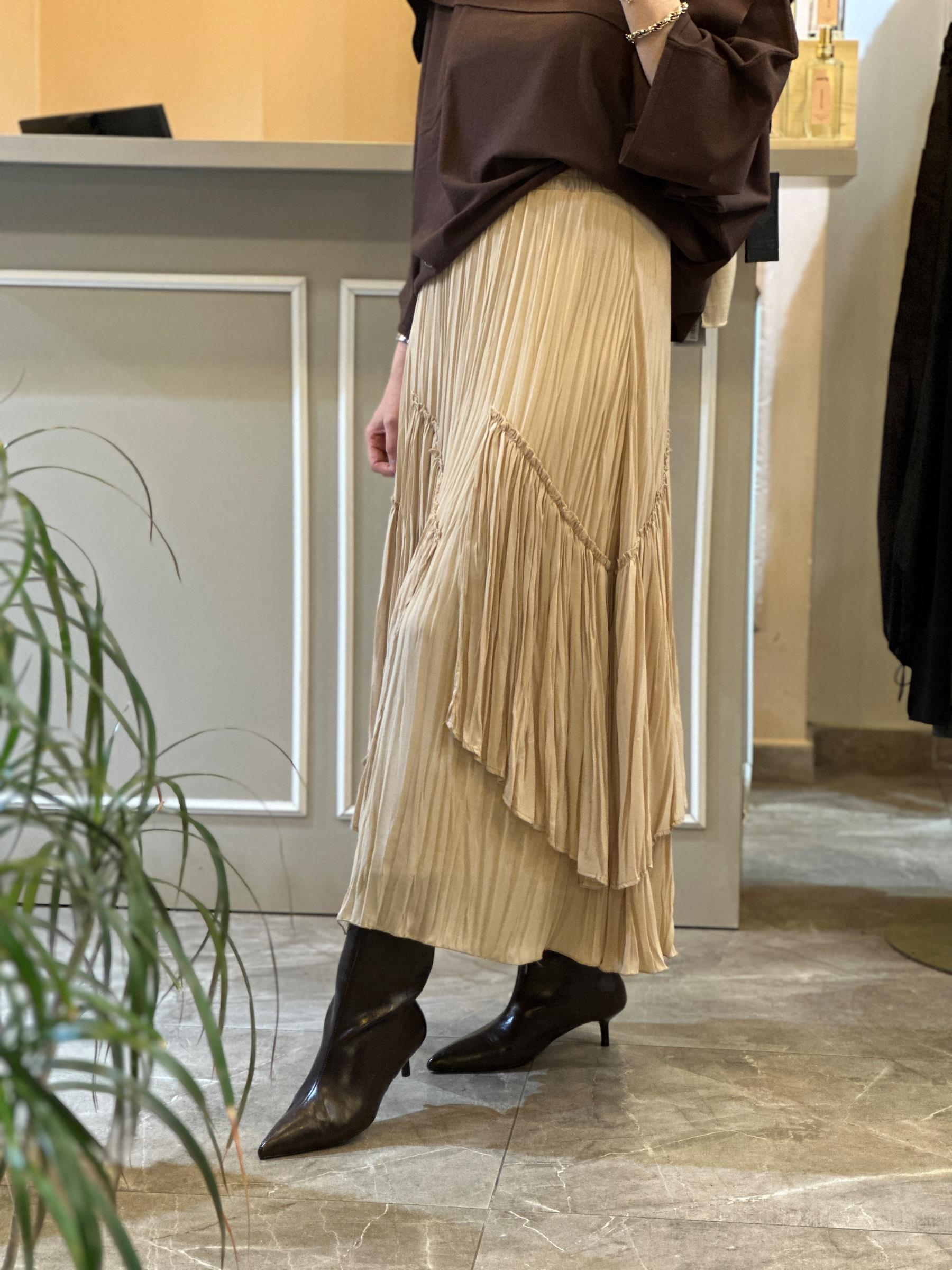 SENTEZ Lilium Parçalı Volanlı Etek Ekru