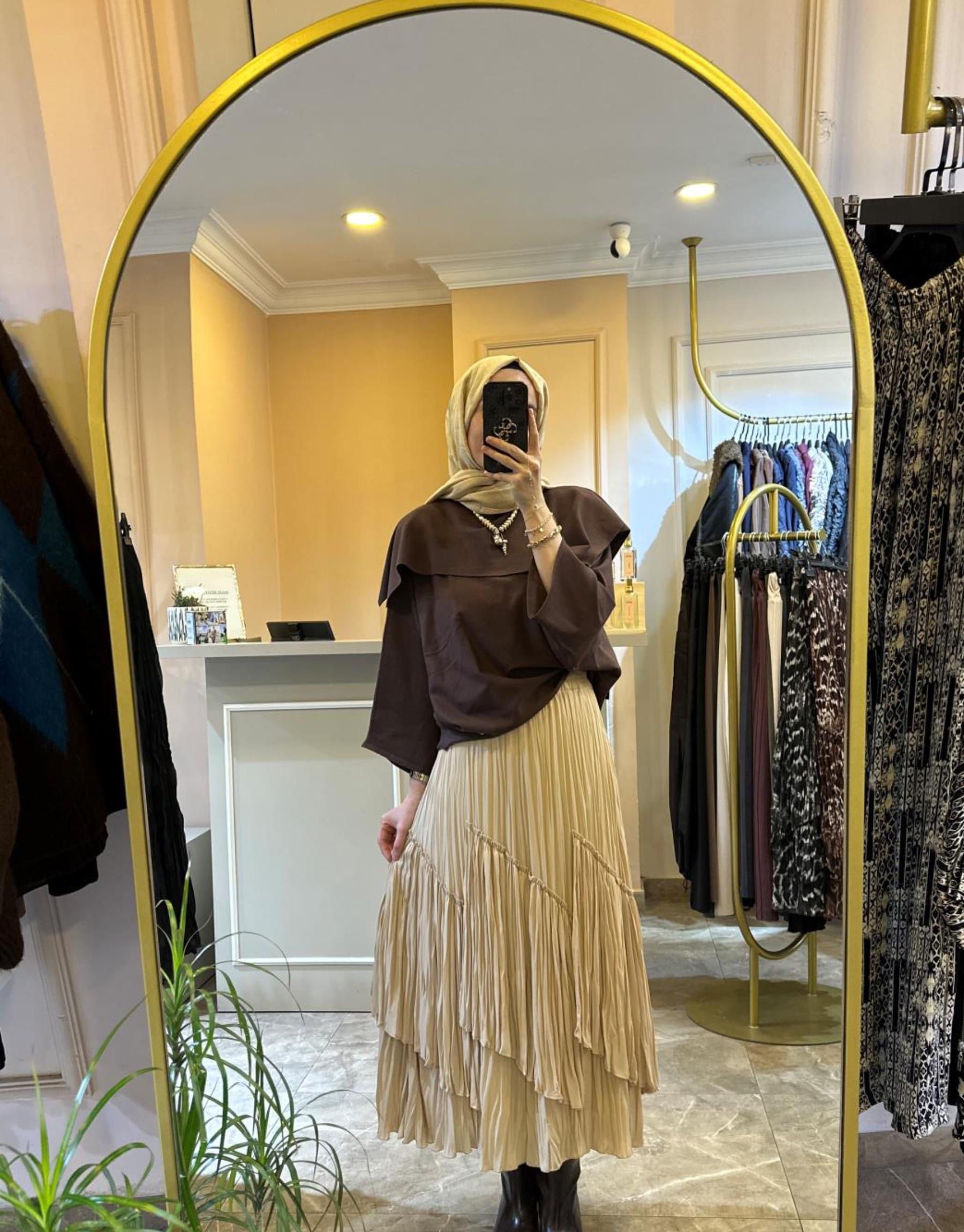 SENTEZ Ely Beli Lastikli Etek Kahve