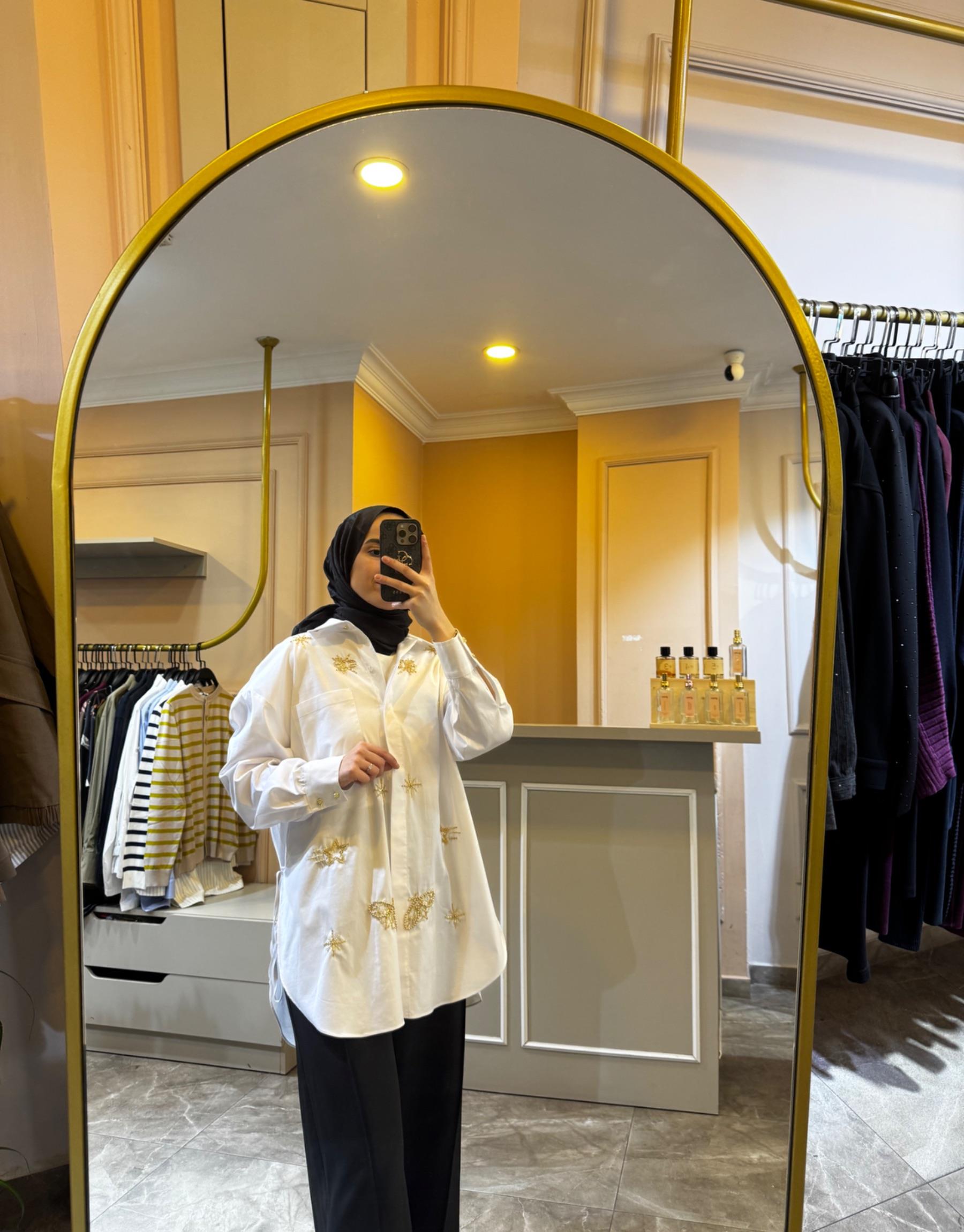 GHİSA Boncuk İşlemeli Yandan Yırtmaçlı Koton Gömlek Tunik | Ghisa