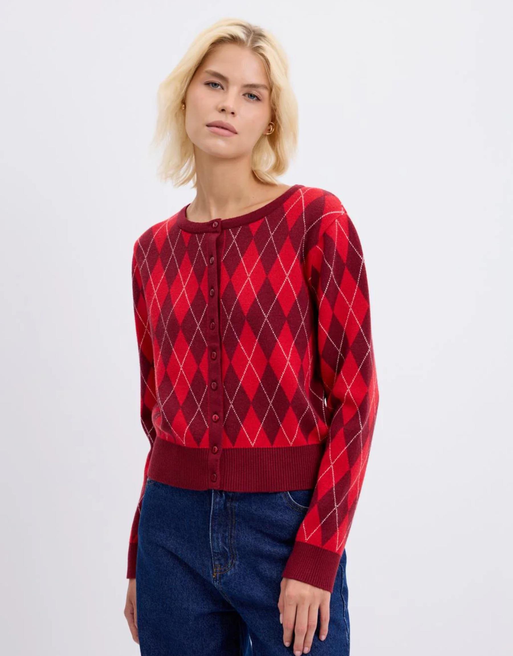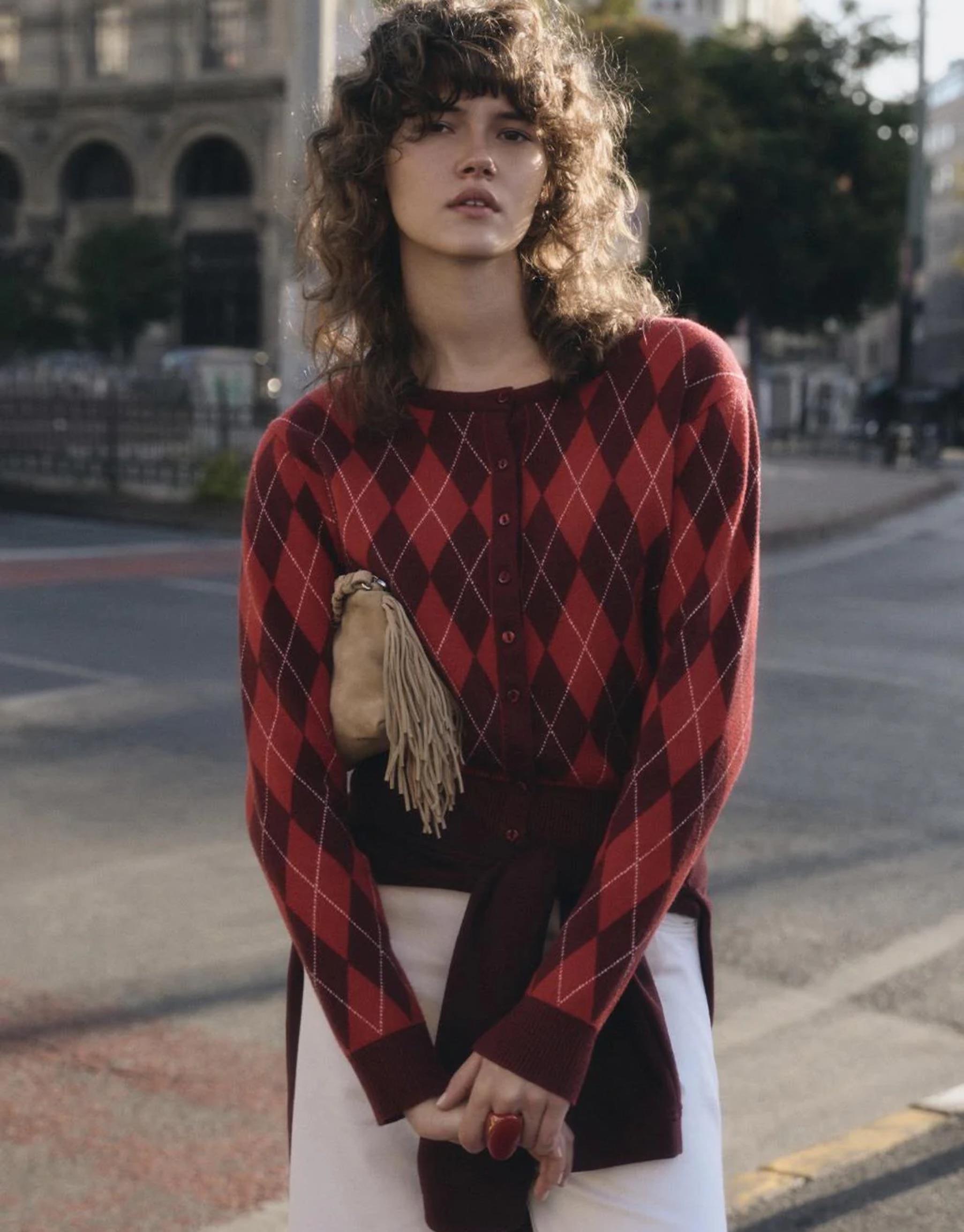 Yuvarlak Yaka Baklava Desenli Triko Hırka | Kadriye basturk