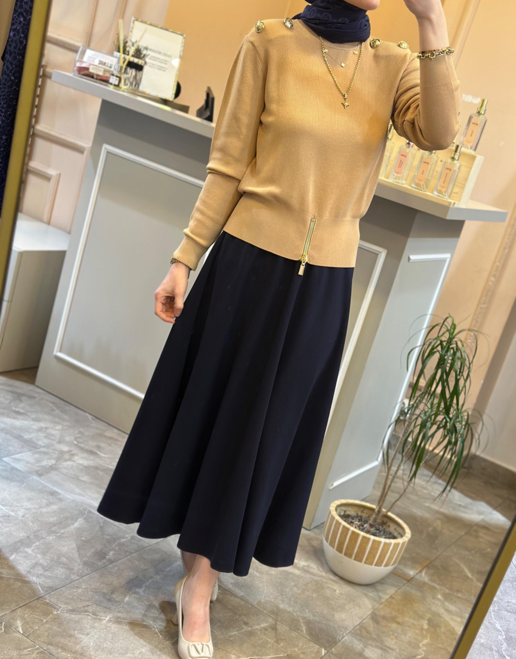 GHİSA KOLLARI VE YAKASI FIRFIR DETAYLI TAKIM Kahve