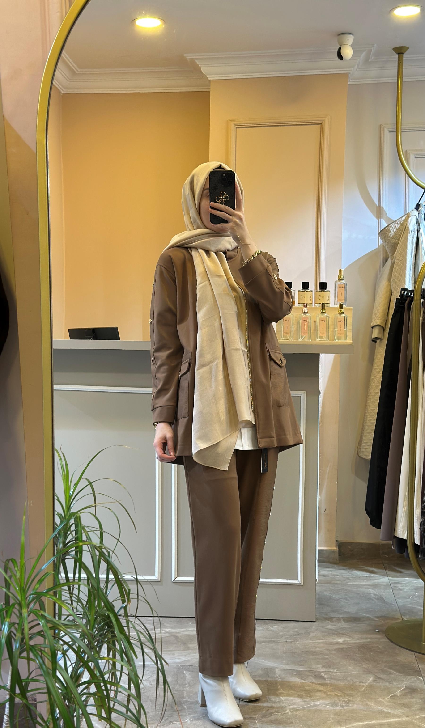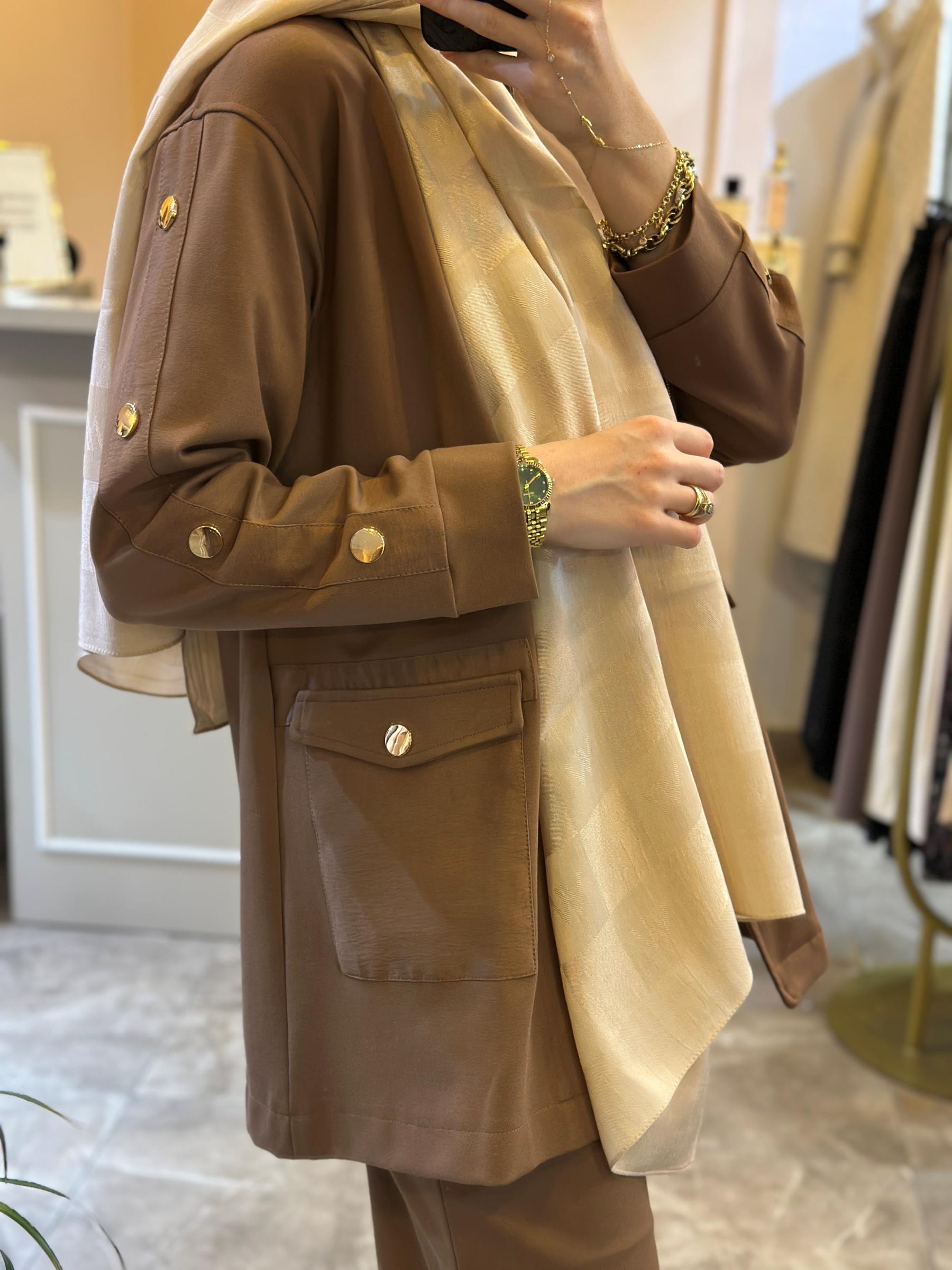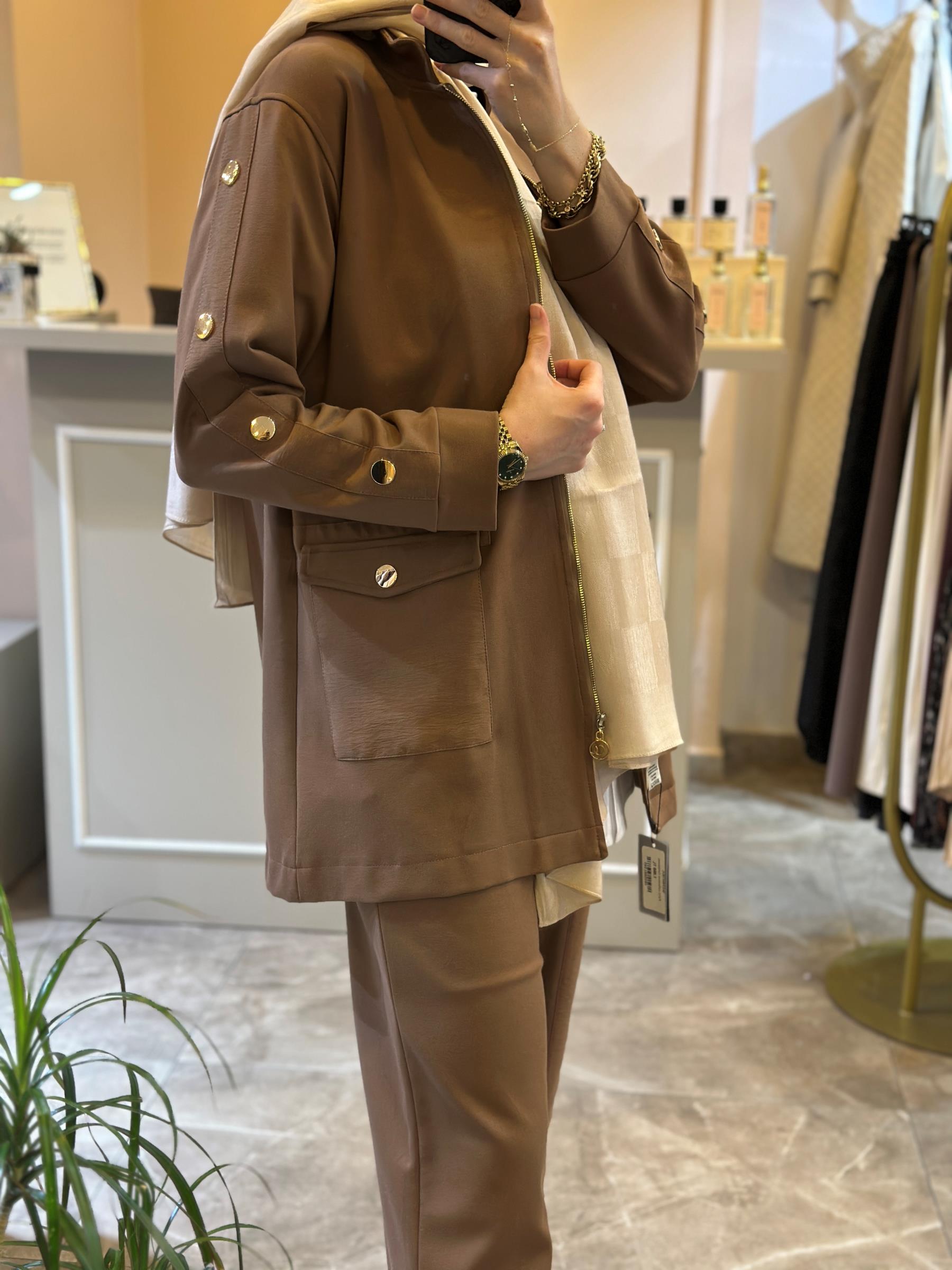 LİSSMORE ÖNÜ ÇIT ÇIT VE FERMUAR DETAYLI TAKIM Kahve