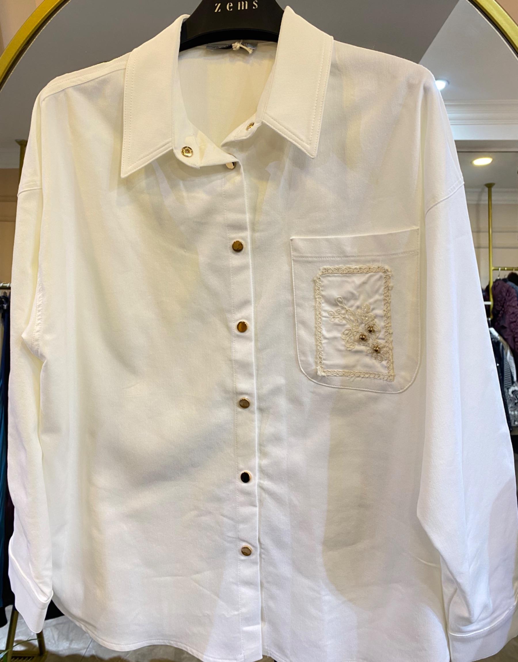 GHİSA YANDAN BAĞLAMALI KUŞ DETAYLI GÖMLEK Ekru
