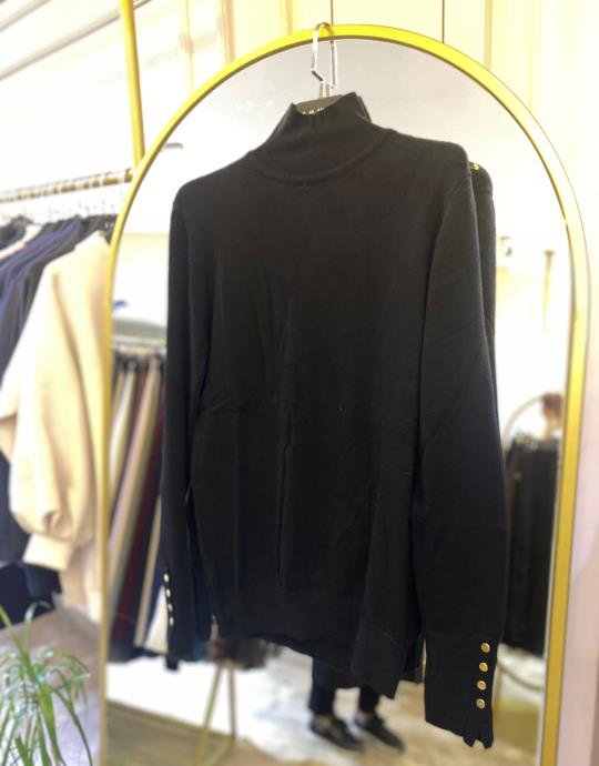 CEREMONY Kolları Metal Düğmeli Balıkçı Kısa Triko Kazak Siyah
