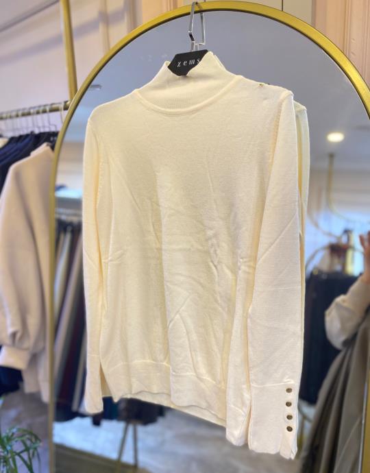 CEREMONY Kolları Metal Düğmeli Balıkçı Kısa Triko Kazak Ekru