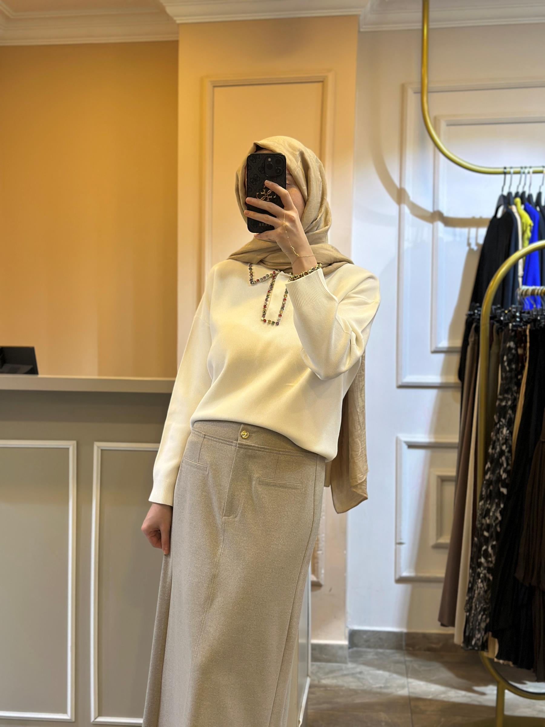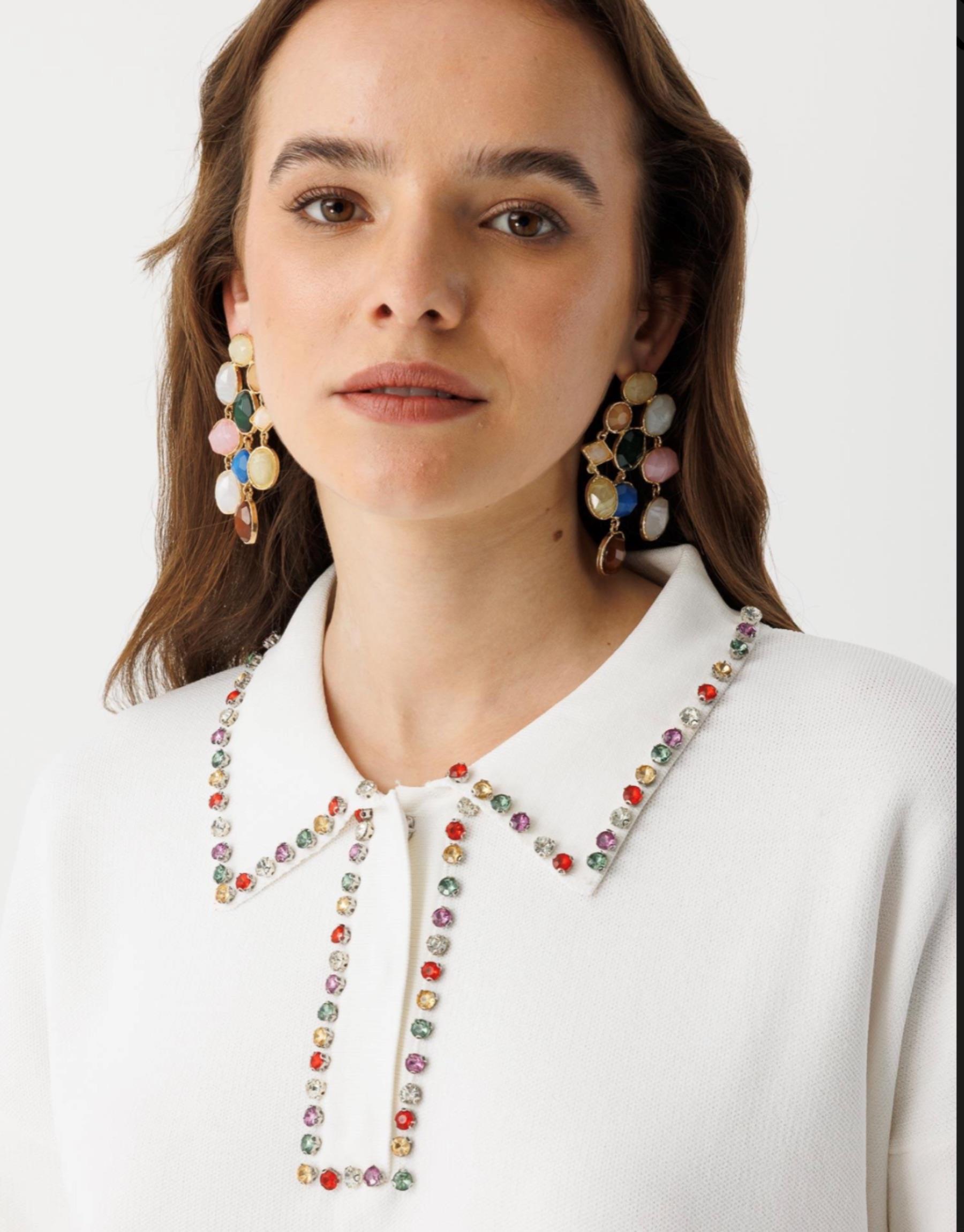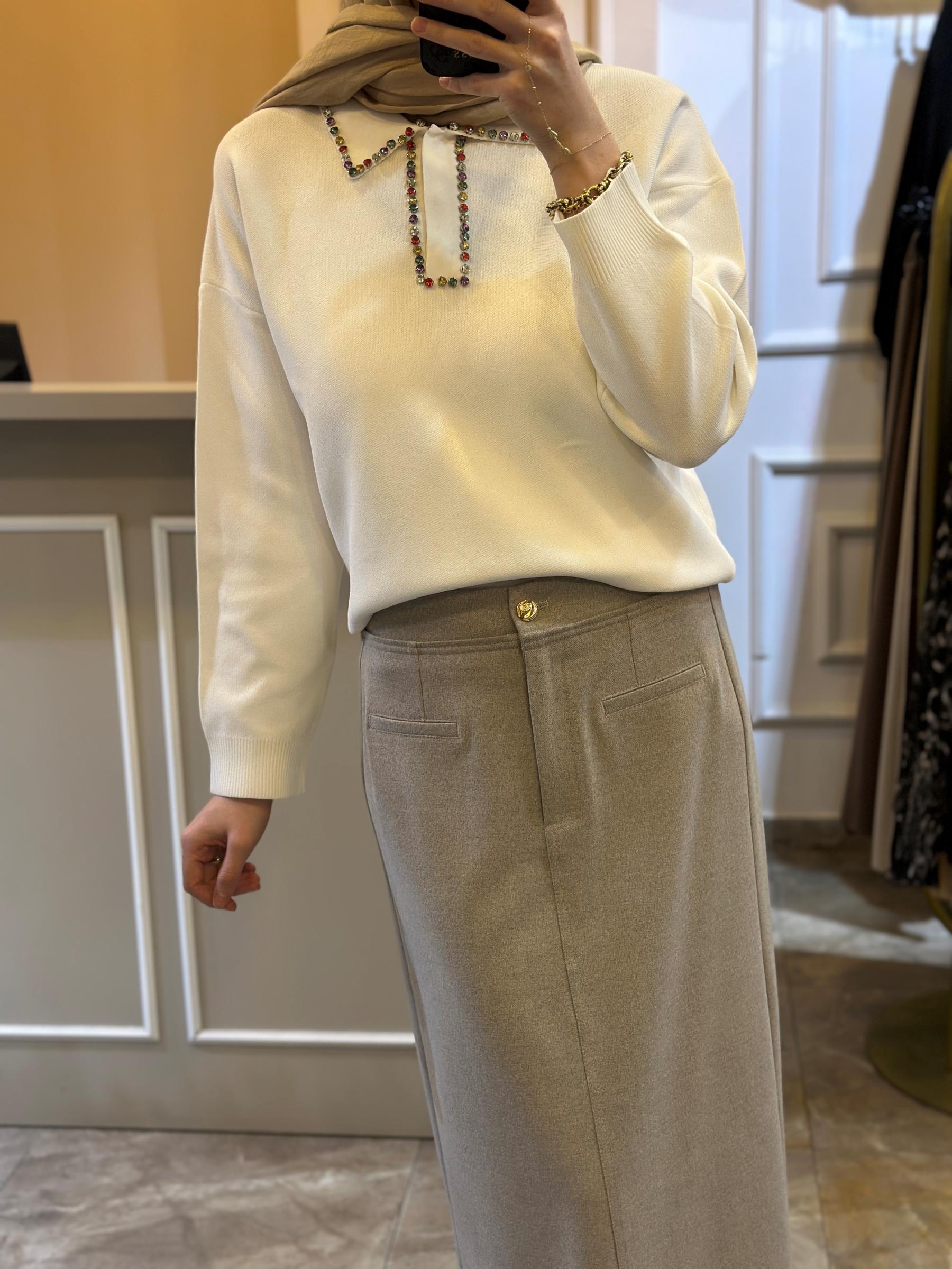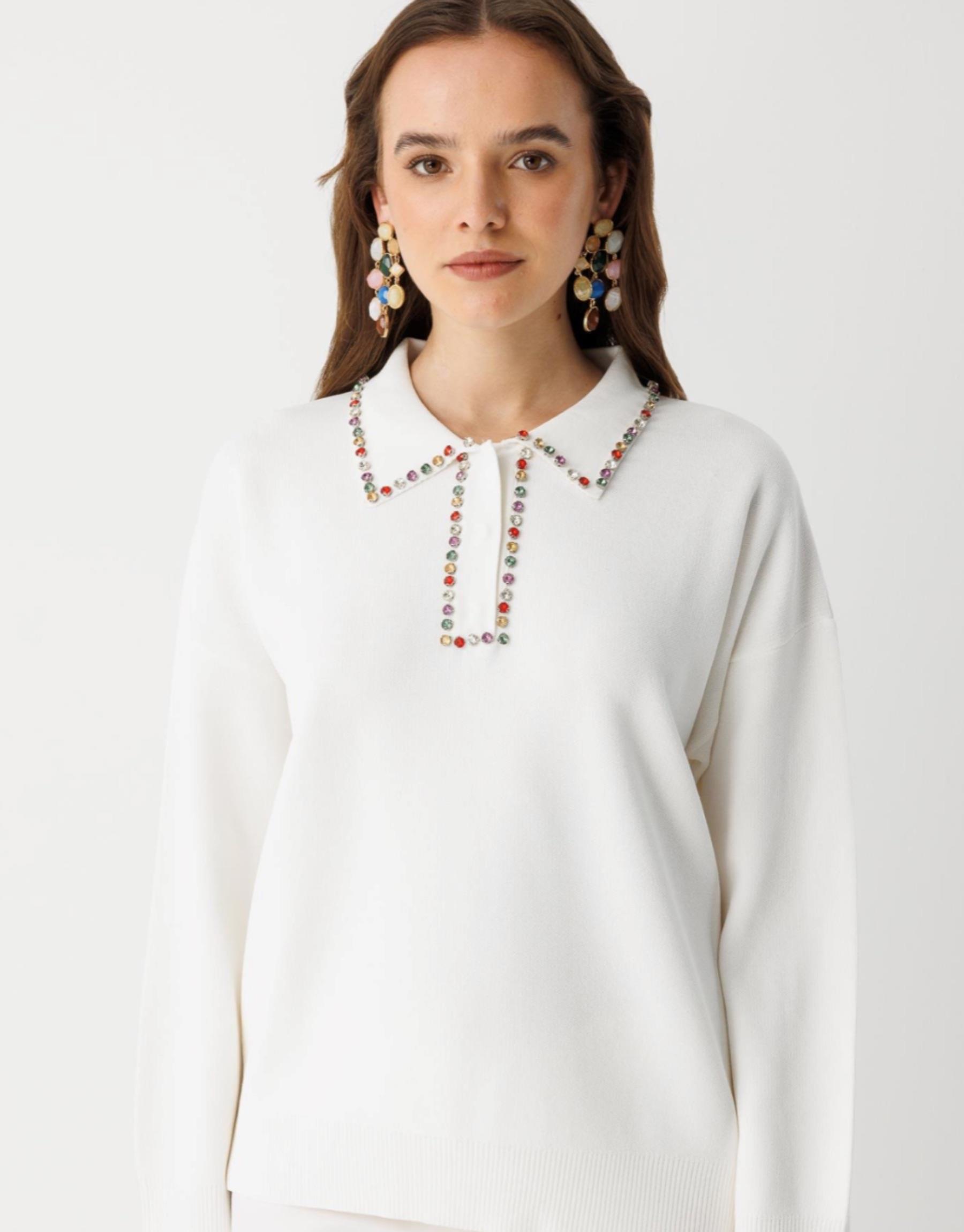 GHİSA YAKASI TAŞ İŞLEMELİ TRİKO BLUZ | Ghisa