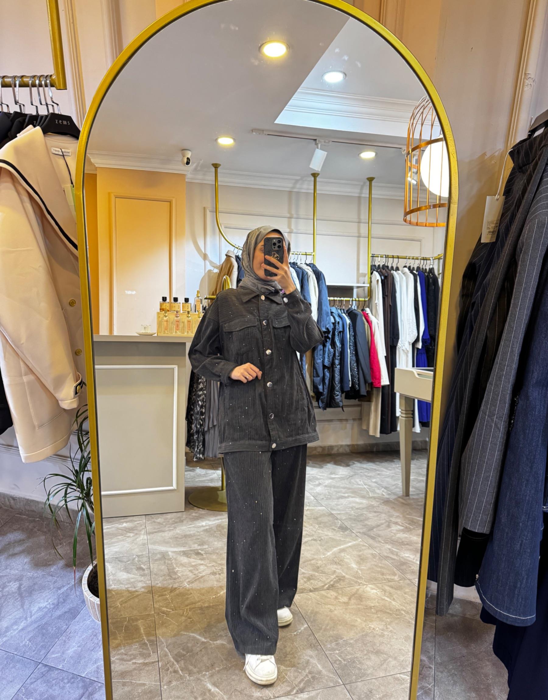CEREMONY Düğmeli Uzun Kollu Dekoratif Dikişli Gömlek Antrasit