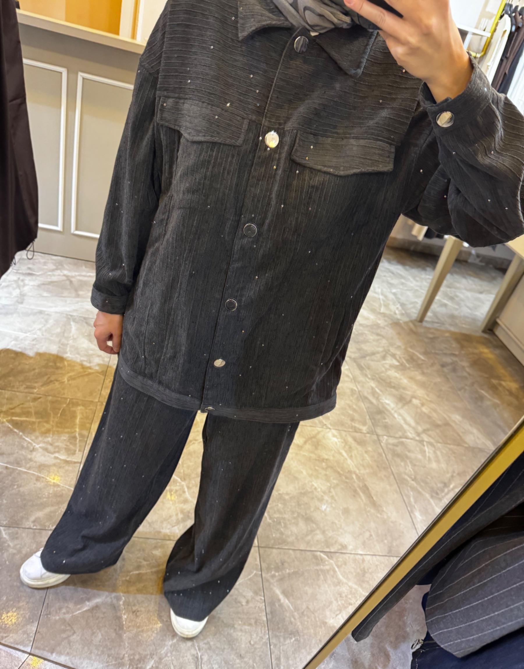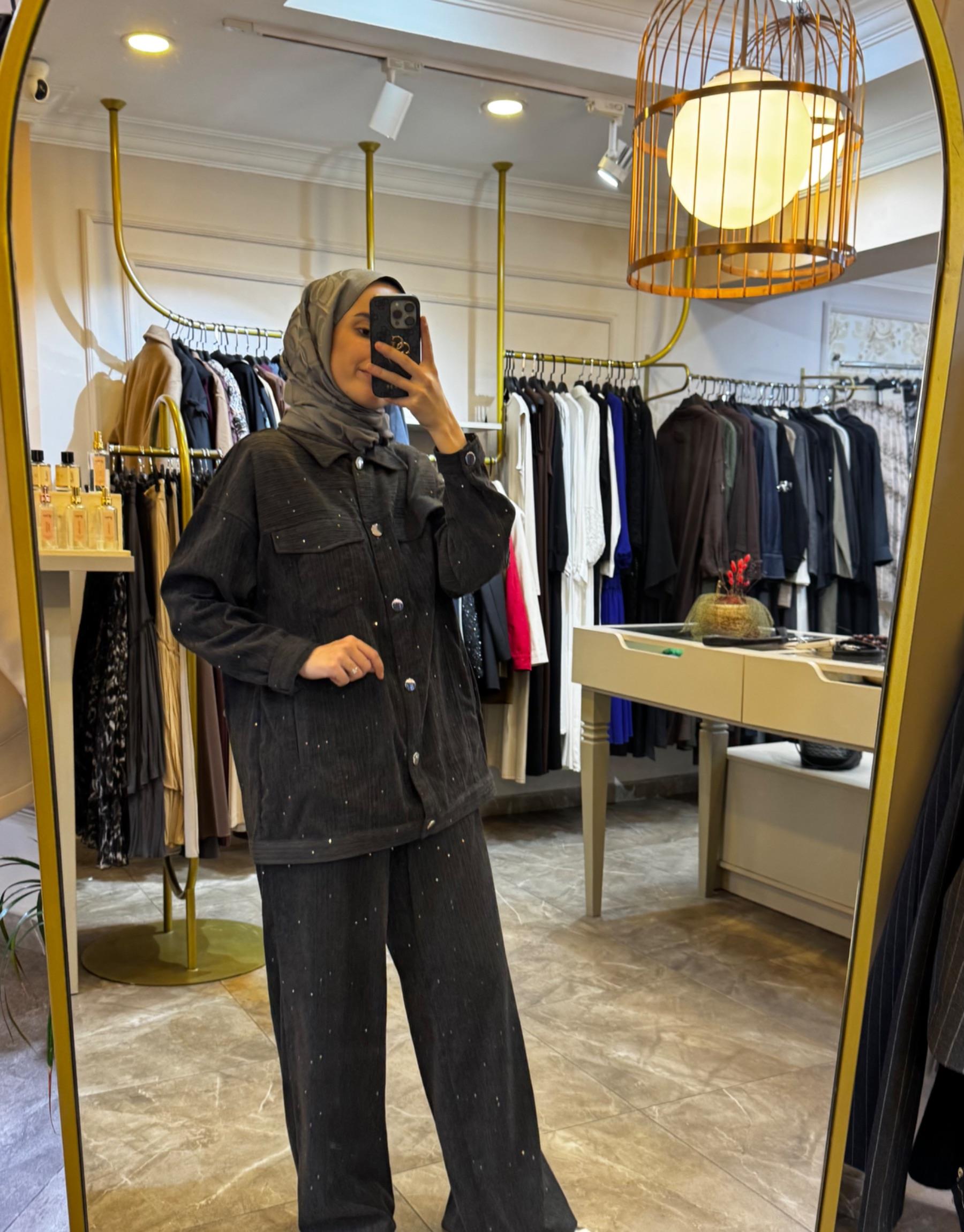 CEREMONY İç Elbisesi Bambu Ön İki Pat Taş Detaylı Takım Kahve