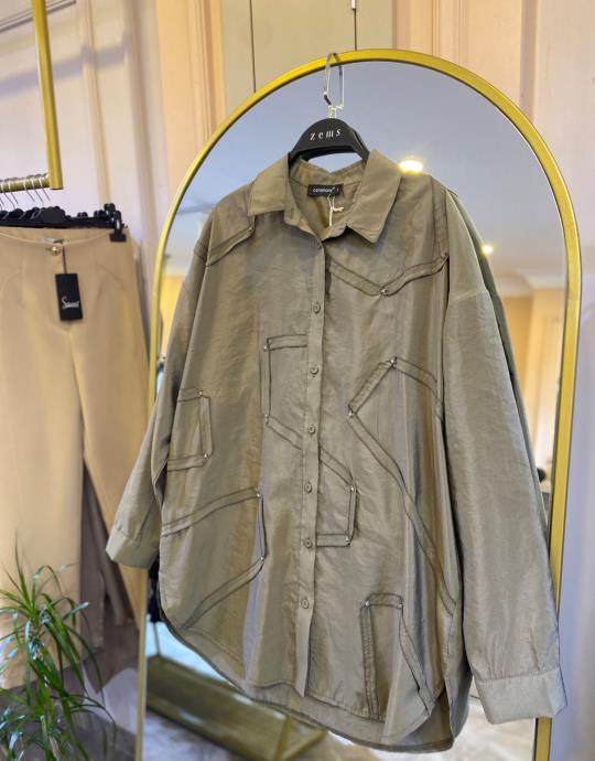 CEREMONY Düğmeli Uzun Kollu Dekoratif Dikişli Gömlek Haki
