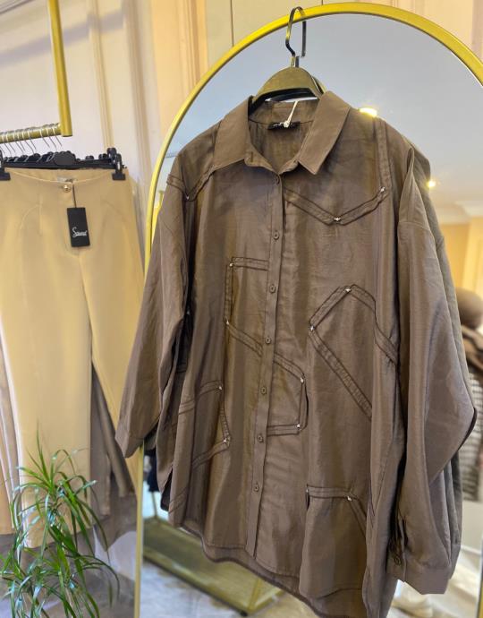 CEREMONY Düğmeli Uzun Kollu Dekoratif Dikişli Gömlek Kahve