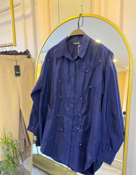 CEREMONY Düğmeli Uzun Kollu Dekoratif Dikişli Gömlek Lacivert