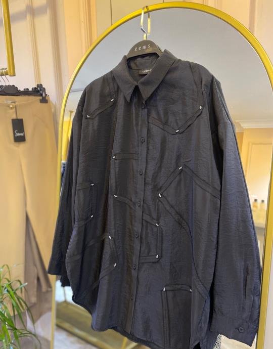 CEREMONY Düğmeli Uzun Kollu Dekoratif Dikişli Gömlek Siyah