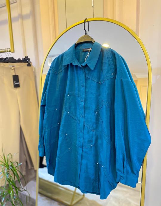CEREMONY Düğmeli Uzun Kollu Dekoratif Dikişli Gömlek İndigo
