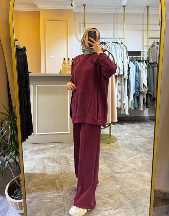 CEREMONY Kanguru Cepli Taş İşlemeli Adel Takım Bordo