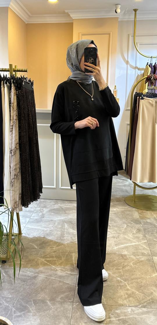 CEREMONY Sol Göğüsü İşlemeli Pantolonlu Bambu Takım Siyah