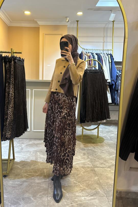 SENTEZ VİOLA PARÇALI KIRIŞTIRMA ETEK Kahve Leopar