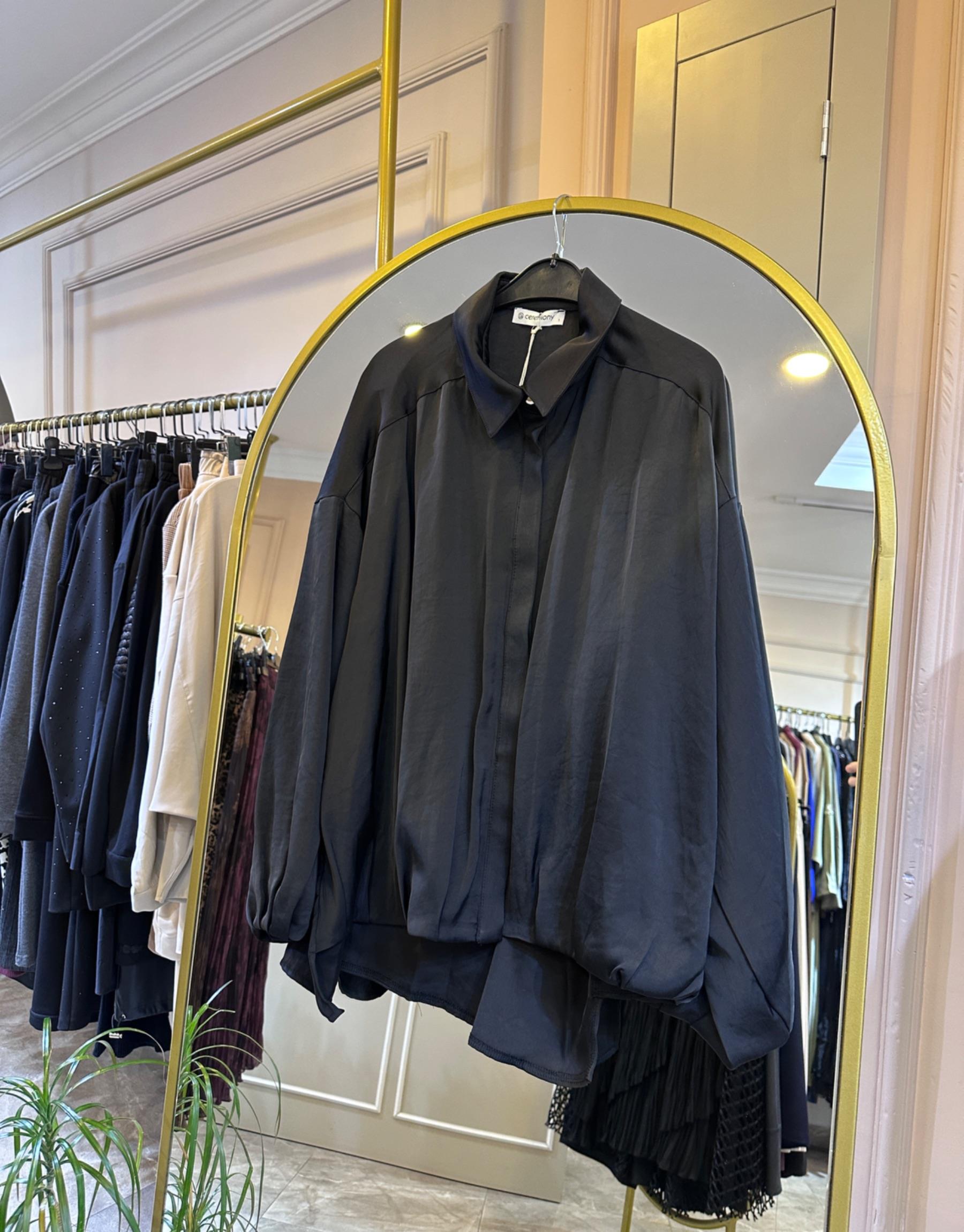 CEREMONY KISA KOLLU BAMBU BLUZ Siyah