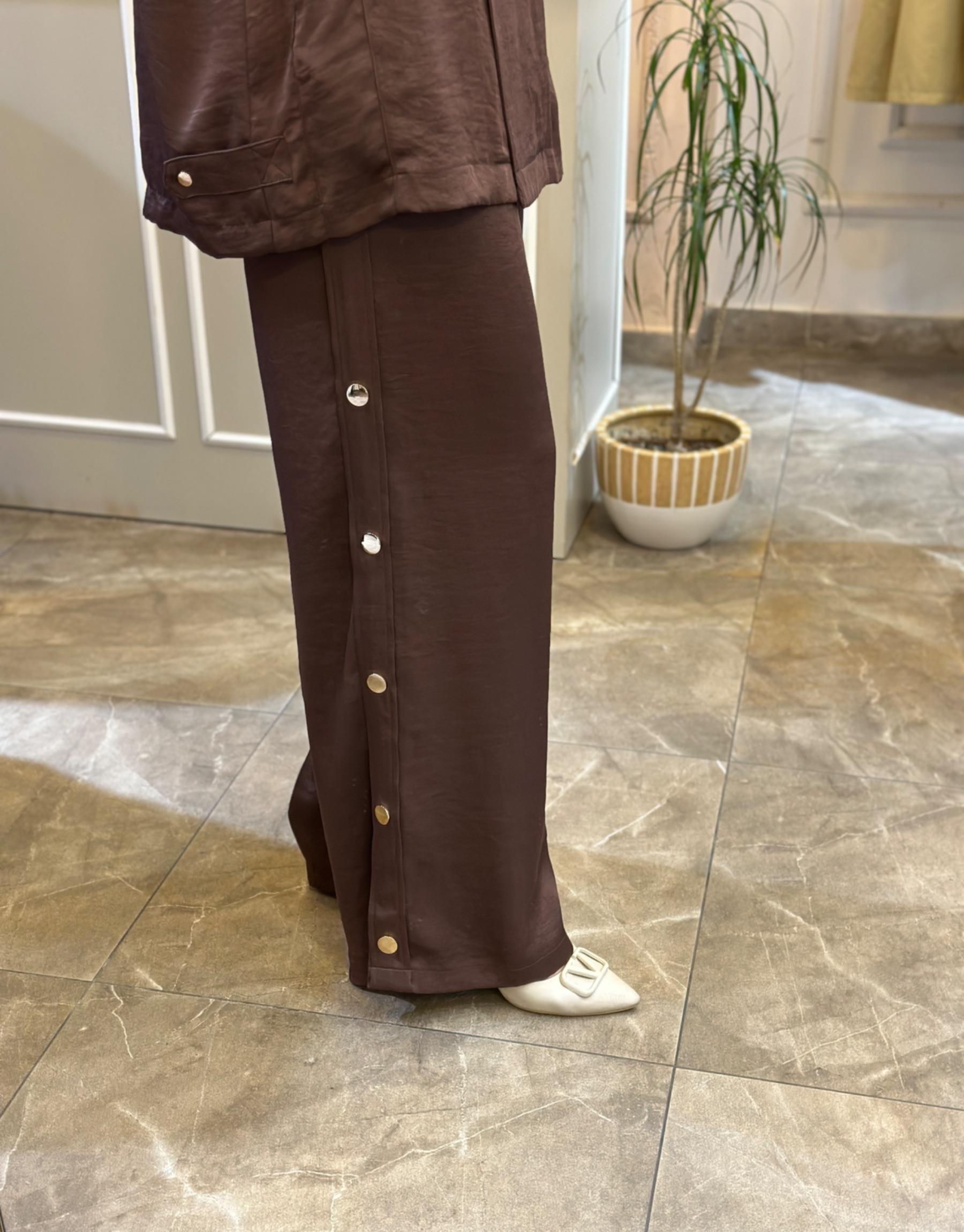 SENTEZ Titan Paça Pile Düğmeli Rahat Pantolon Kahve