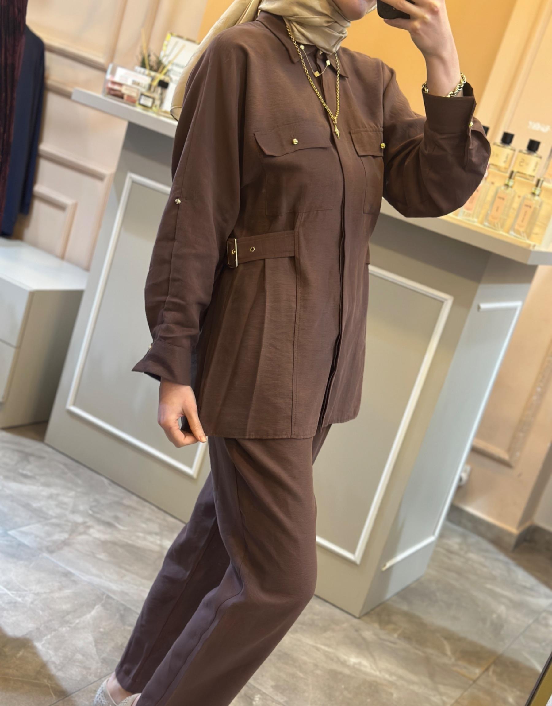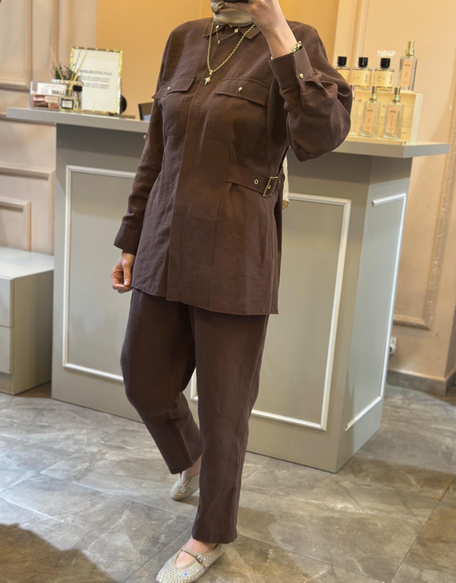 GHİSA BELDEN KEMER DETAYLI KETEN TAKIM | Ghisa