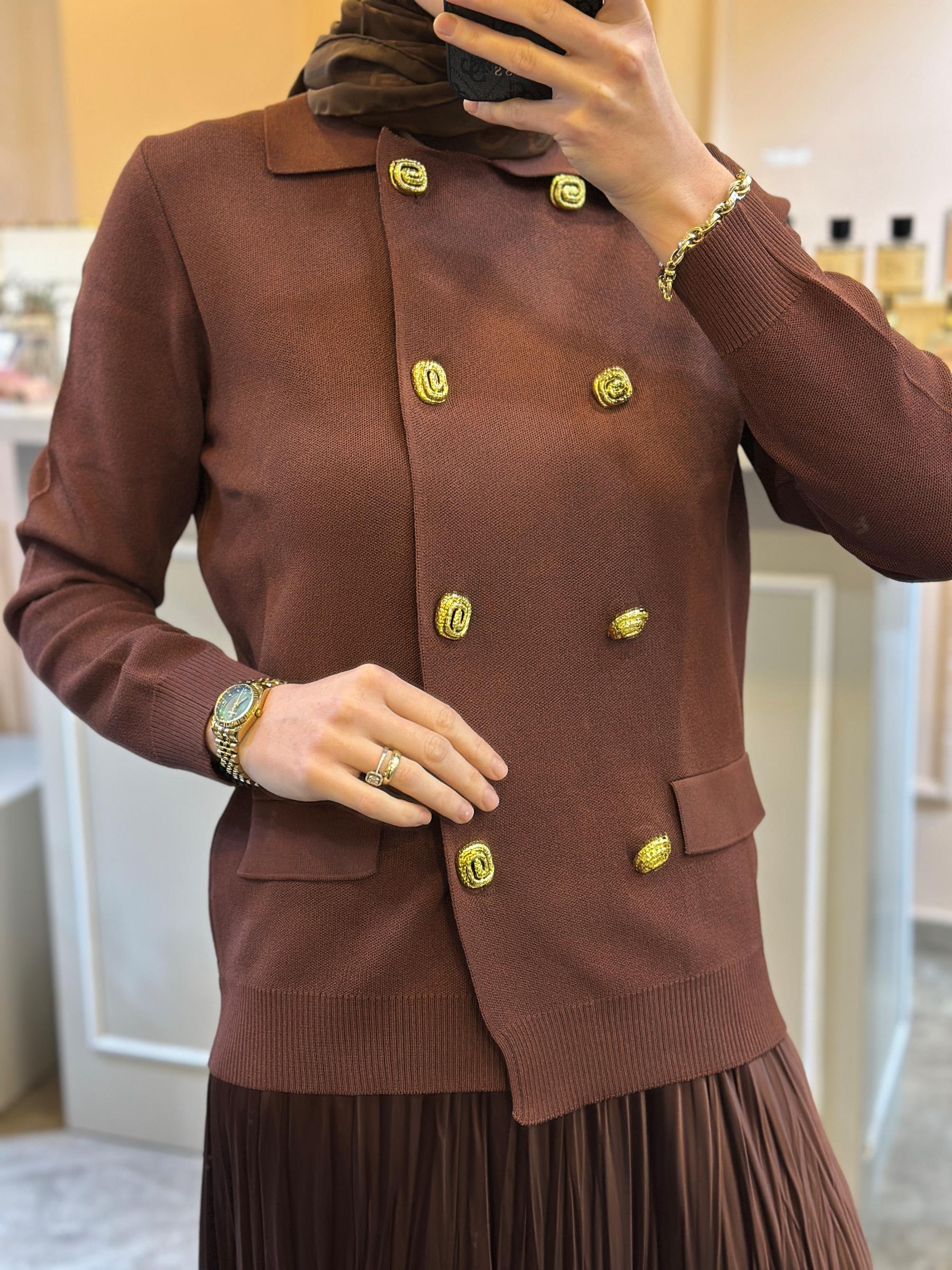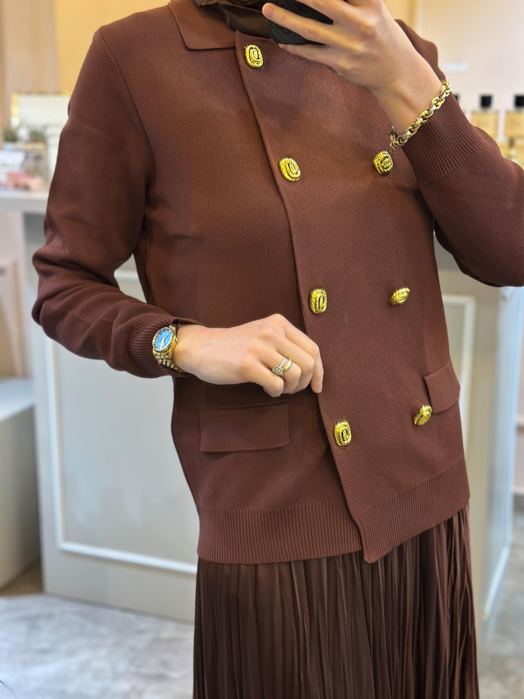 GHİSA DESENLİ ÖNDEN DÜĞME DETAYLI TUNİK Kahve