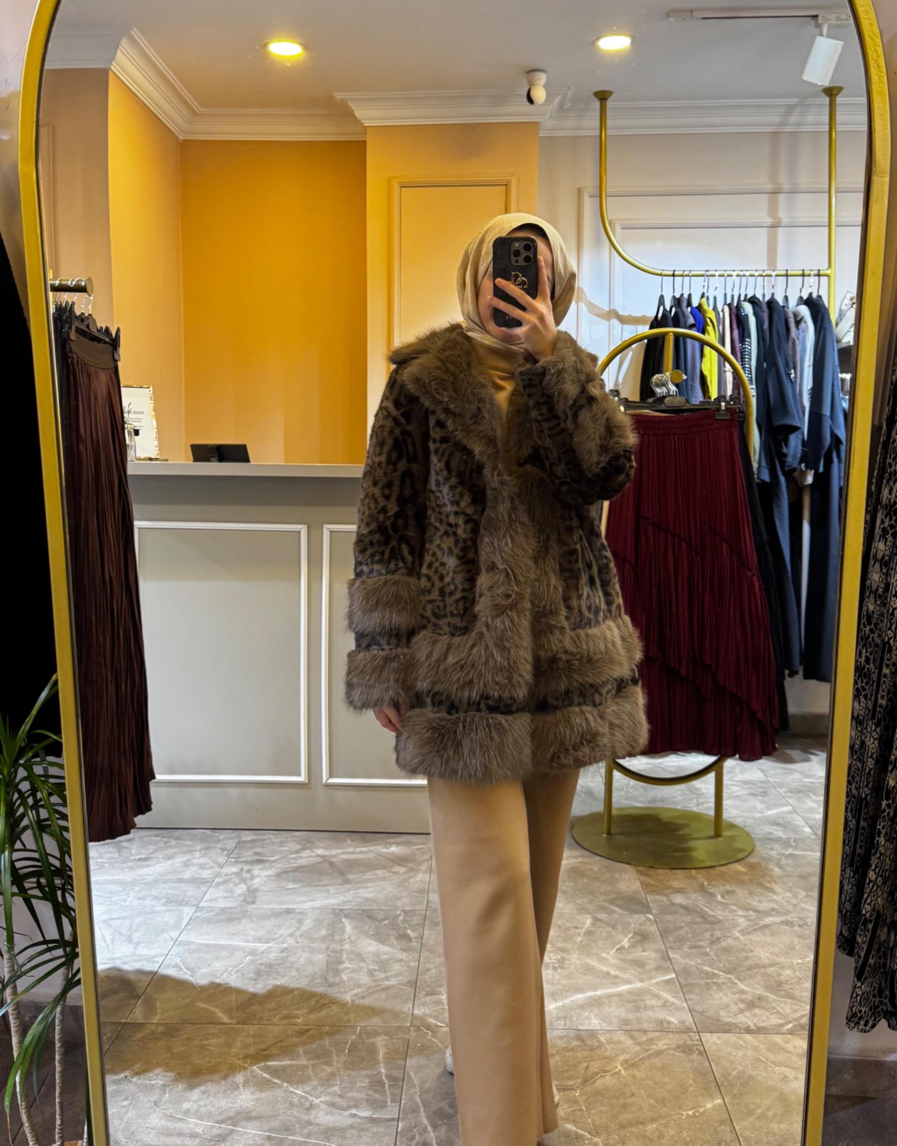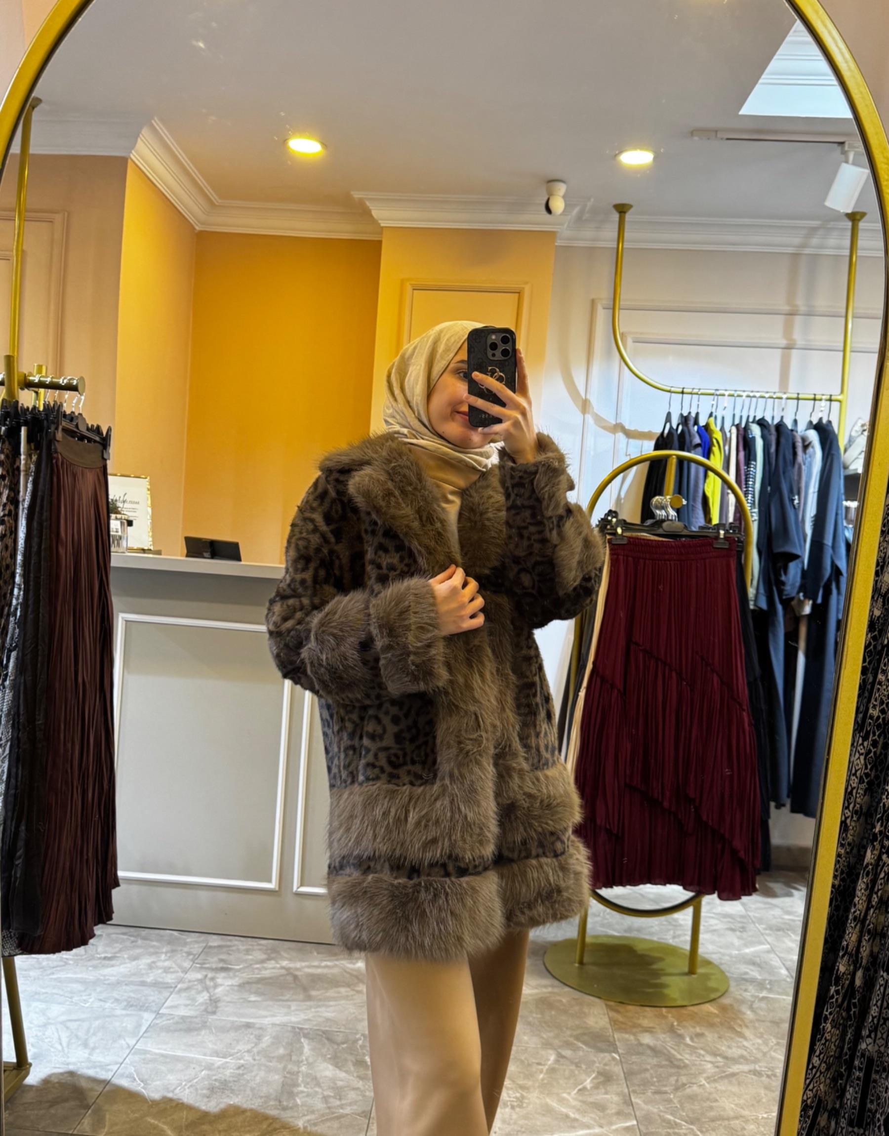 GHİSA Leopar Desenli Kürk Kaban | Ghisa