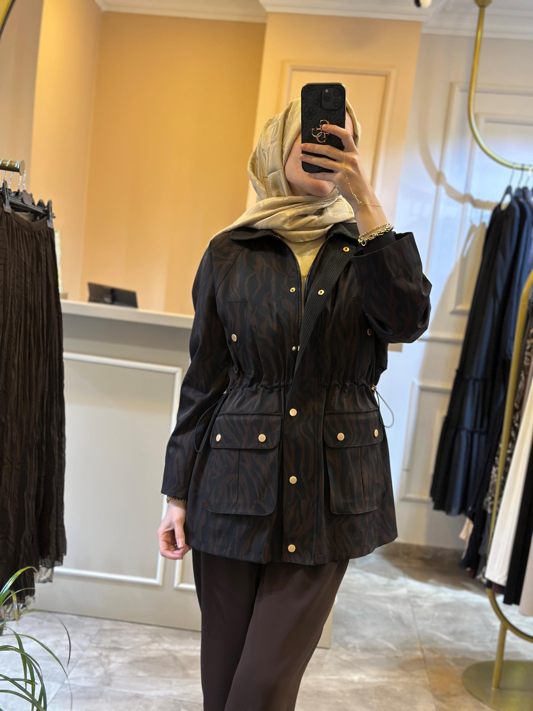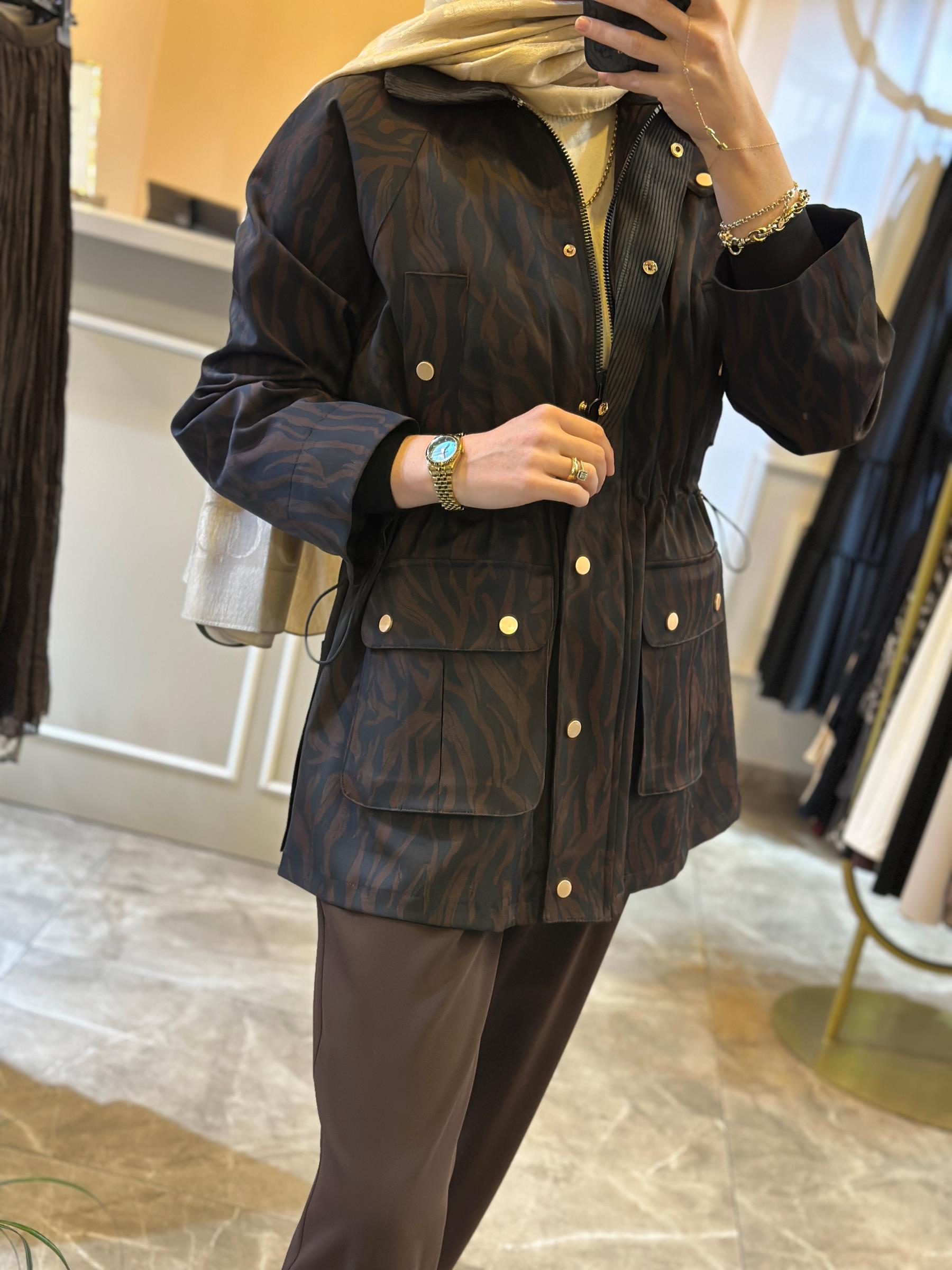 GHİSA ZEBRA DESEN BELDEN BÜZMELİ FERMUARLI KABAN | Ghisa