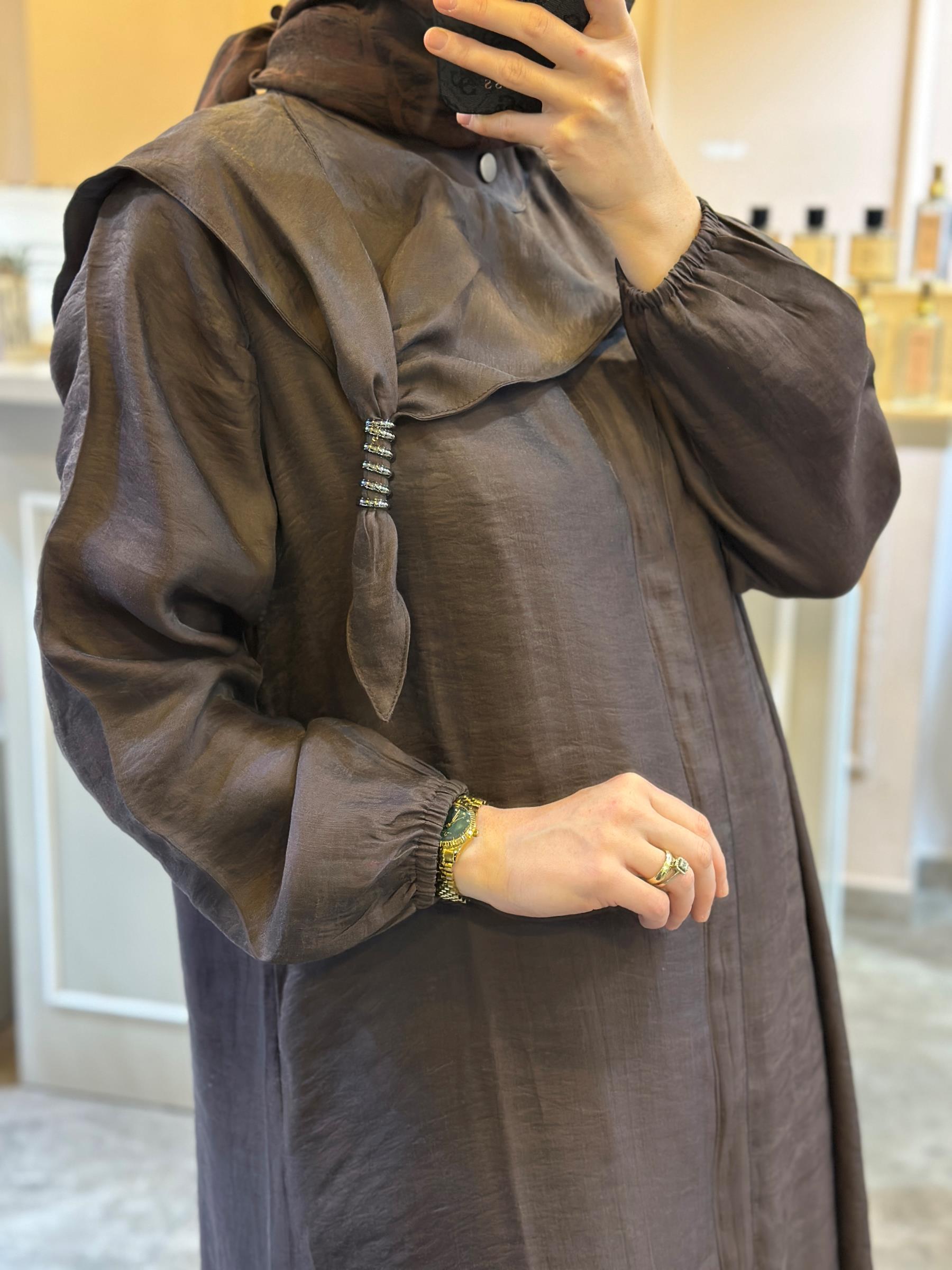 CEREMONY Yakası Bağcıklı Önden Çıt Çıtlı Safari Kap Kahve
