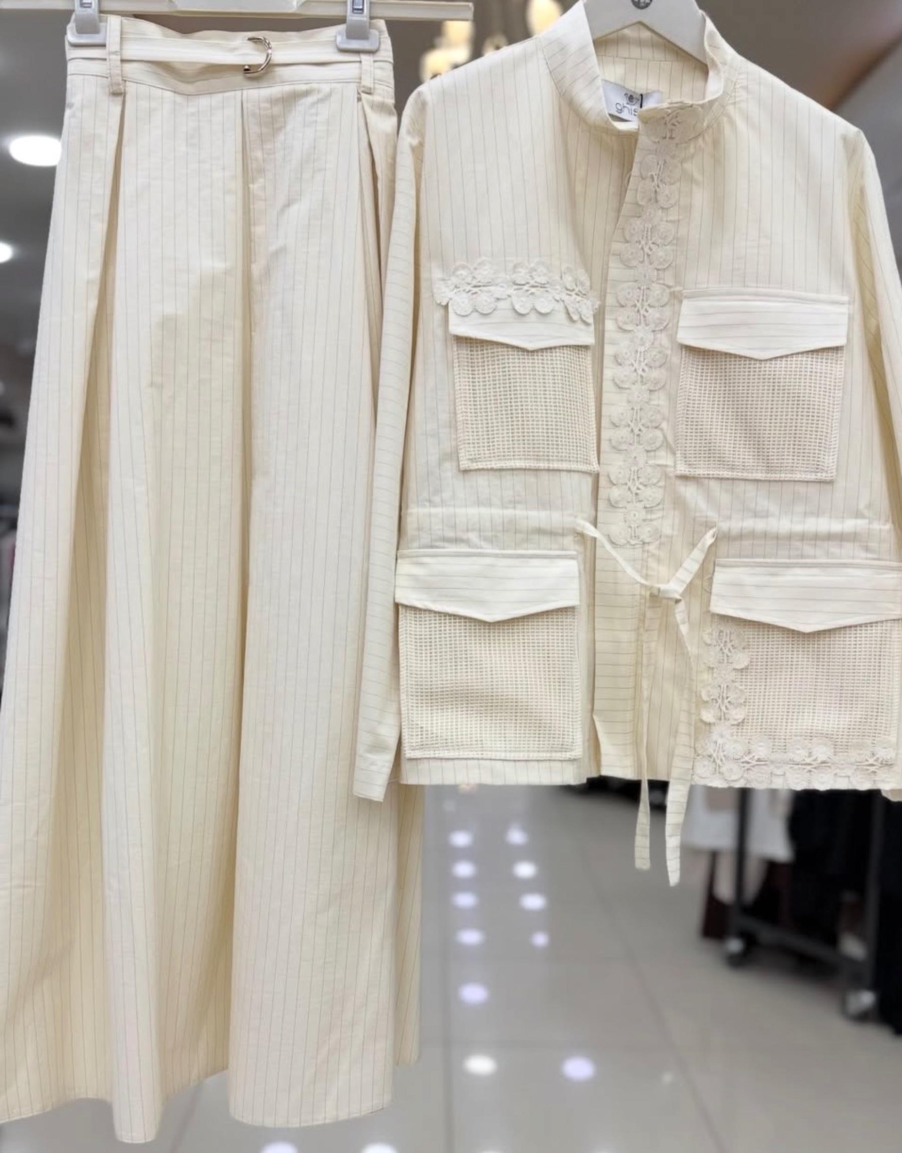GHİSA ÖNÜ DANTEL FİLE DETAYLI BELDEN SIKMALI TAKIM | Ghisa