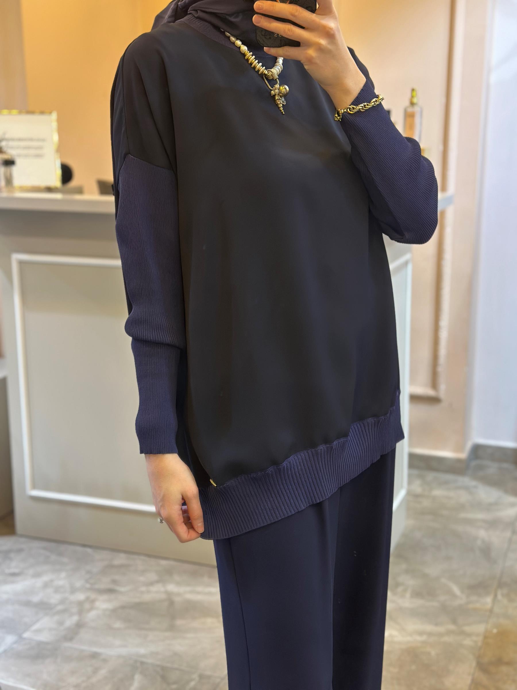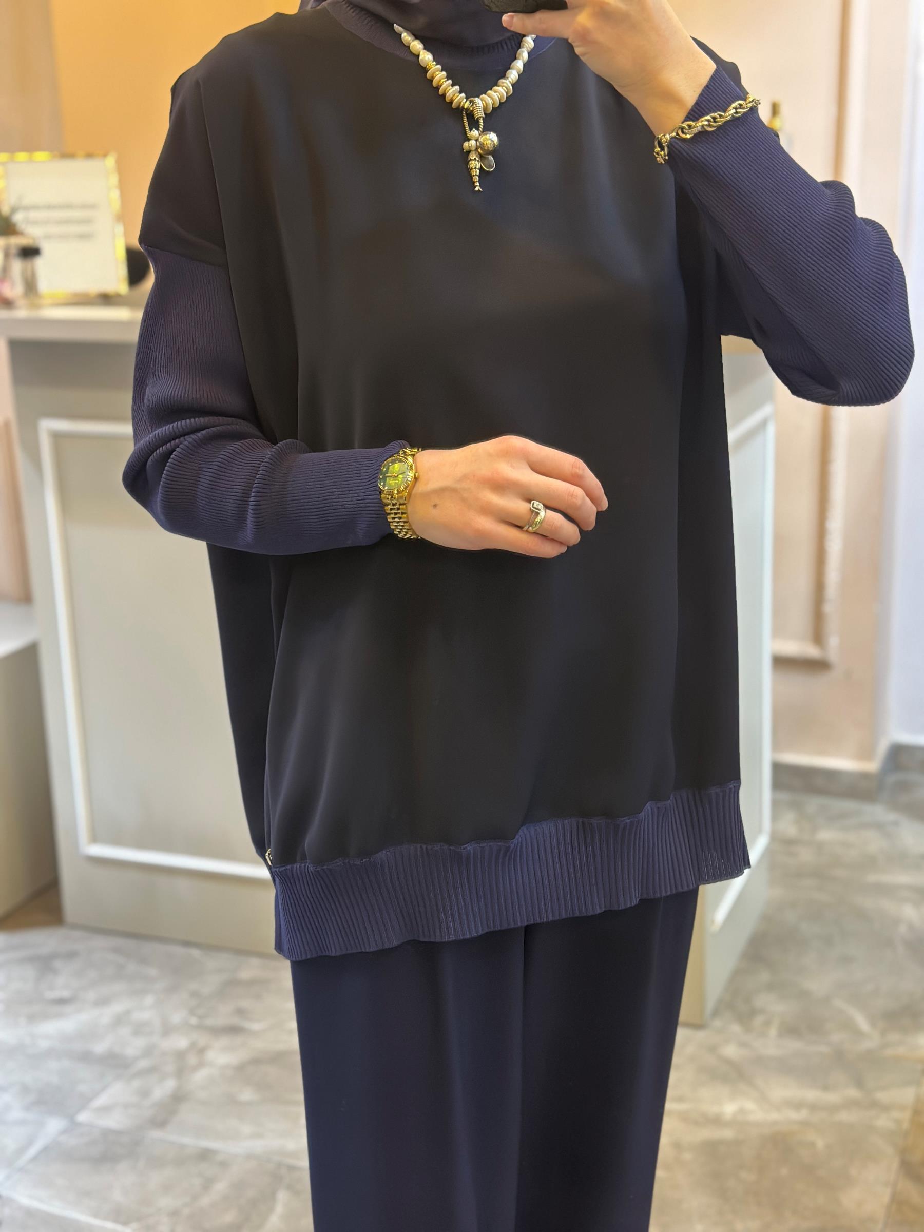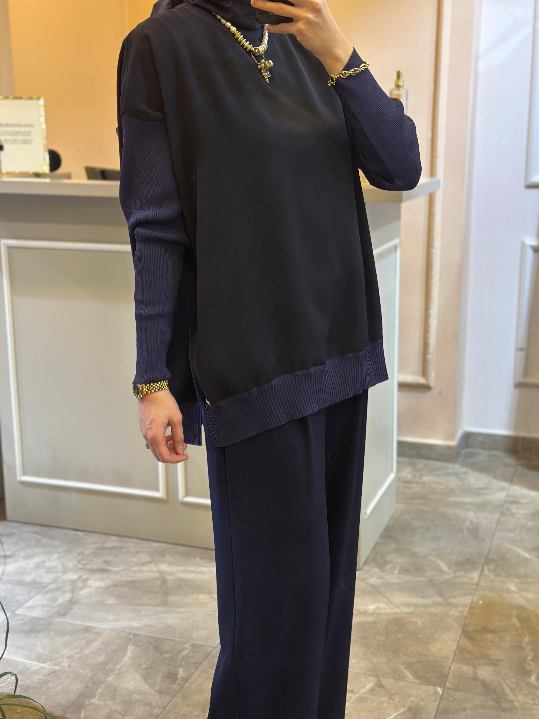 GHİSA KOLLARI VE YAKASI FIRFIR DETAYLI TAKIM Siyah