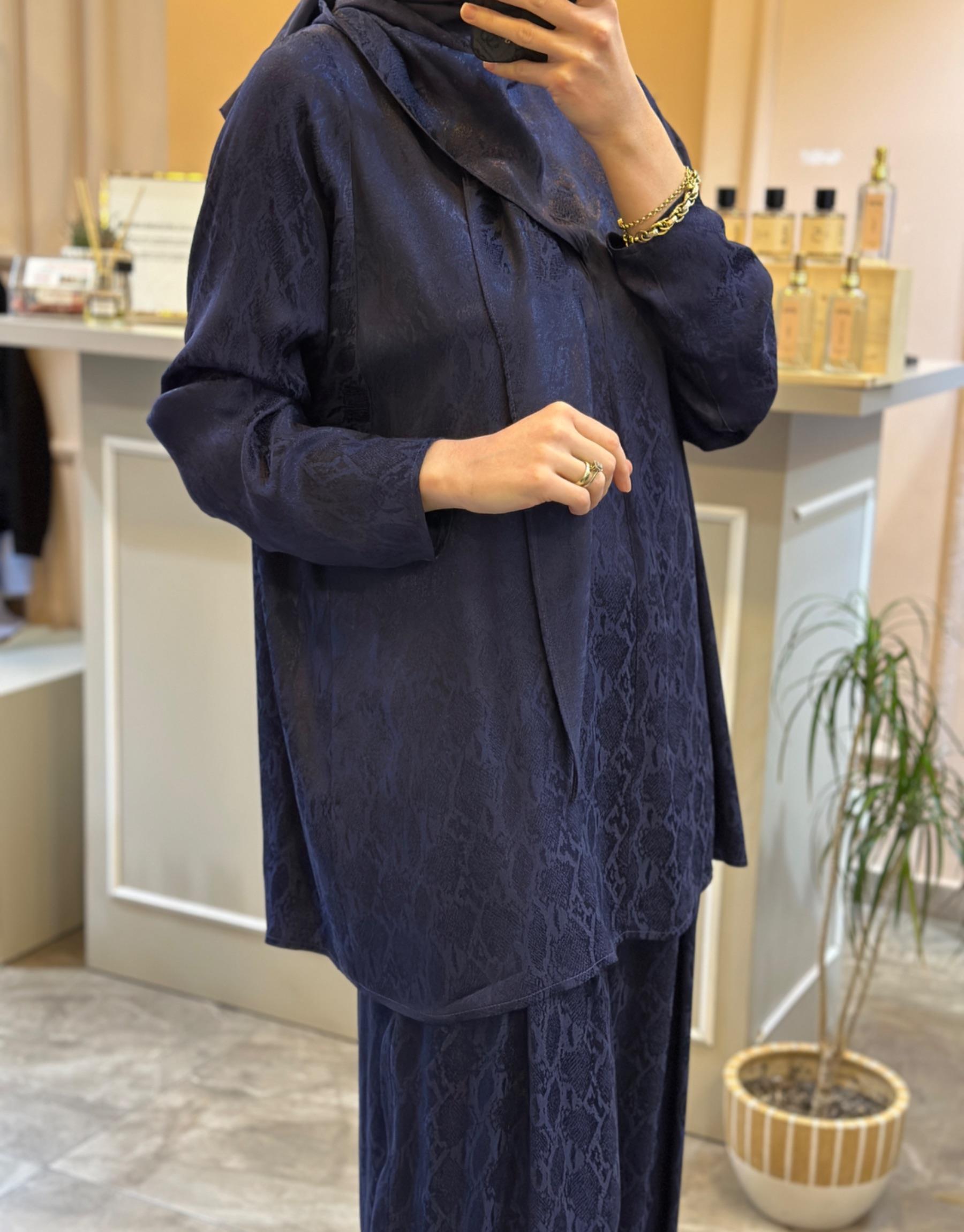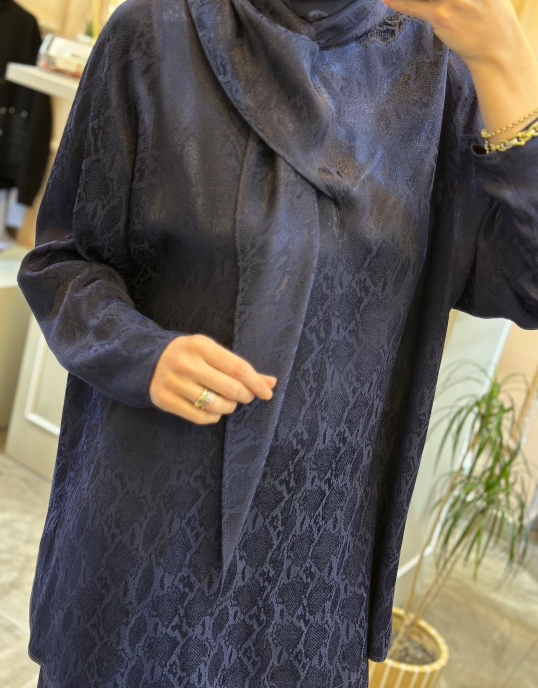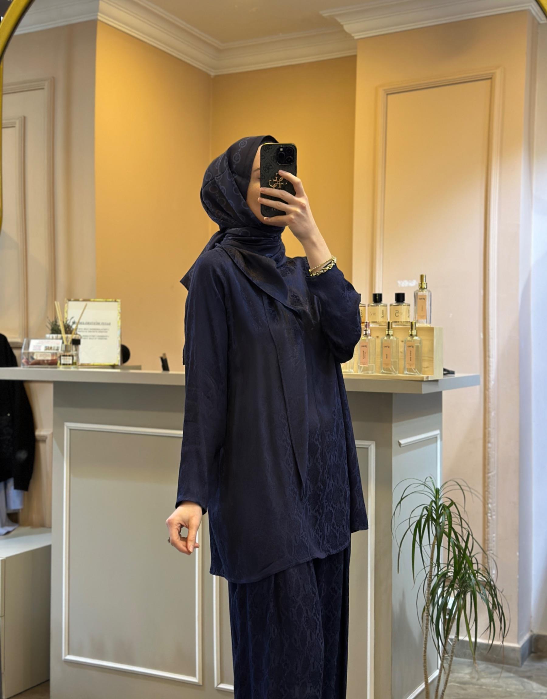GHİSA Tuniği Şal Detaylı Kendinden Desenli Saten Takım | Ghisa
