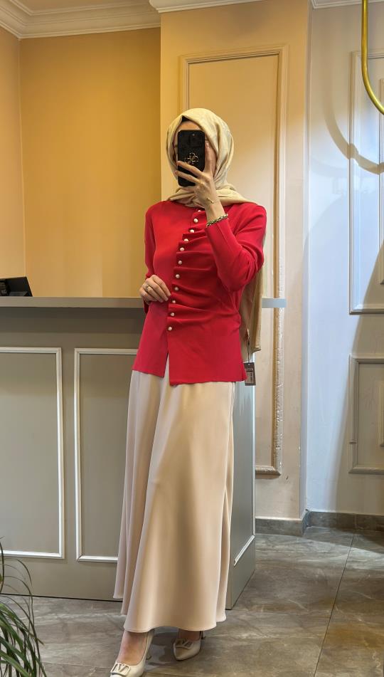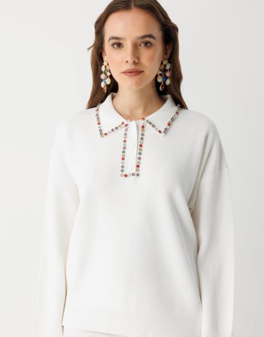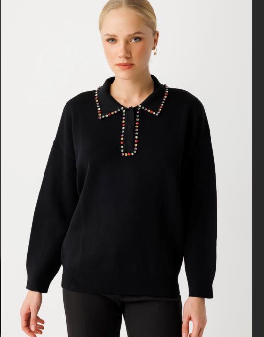 - Bisiklet yaka, uyumlu renk kalp motif geçişli, yaka, etek ucu ve manşet kendi kumaşından ribana örme,