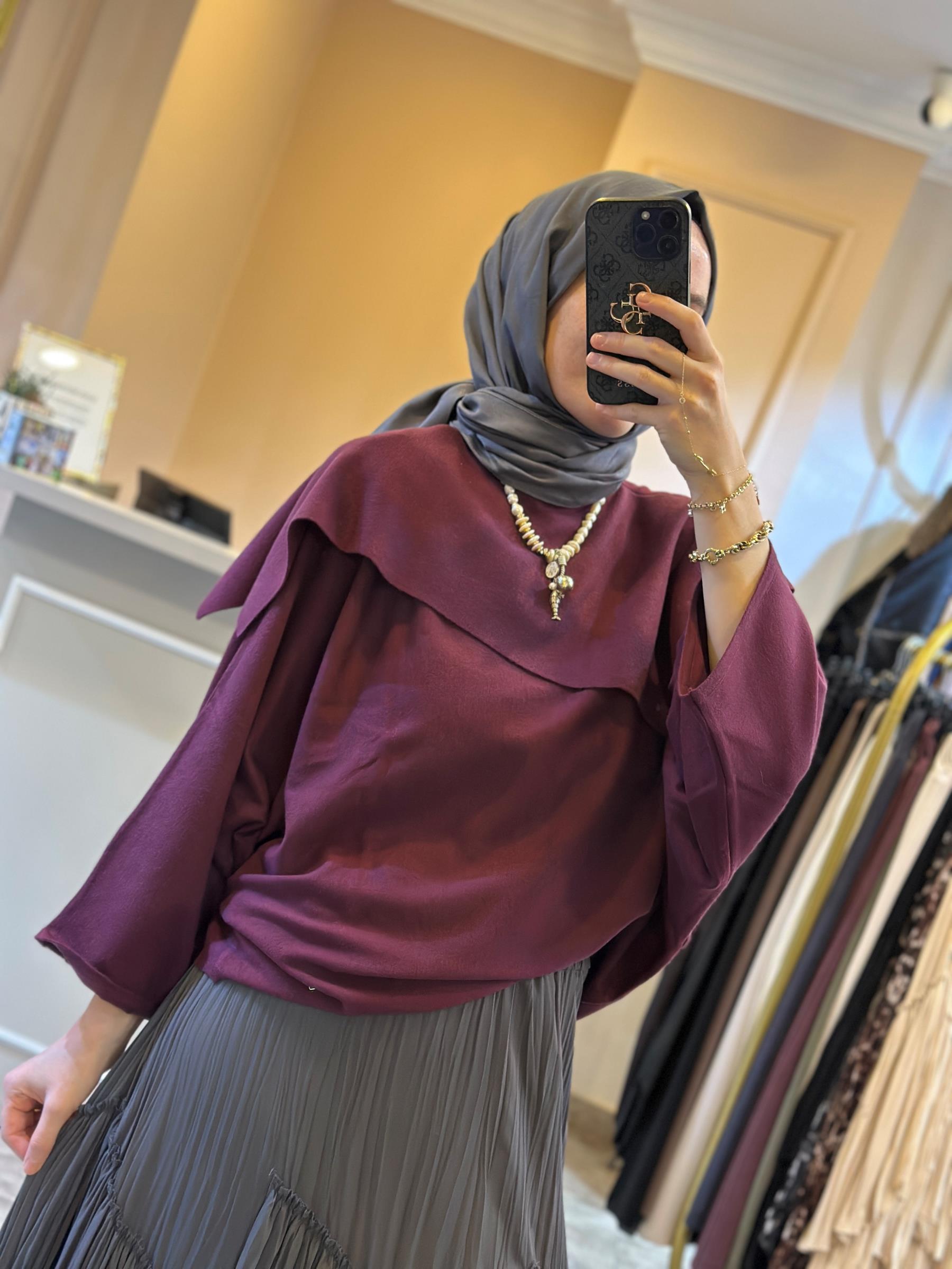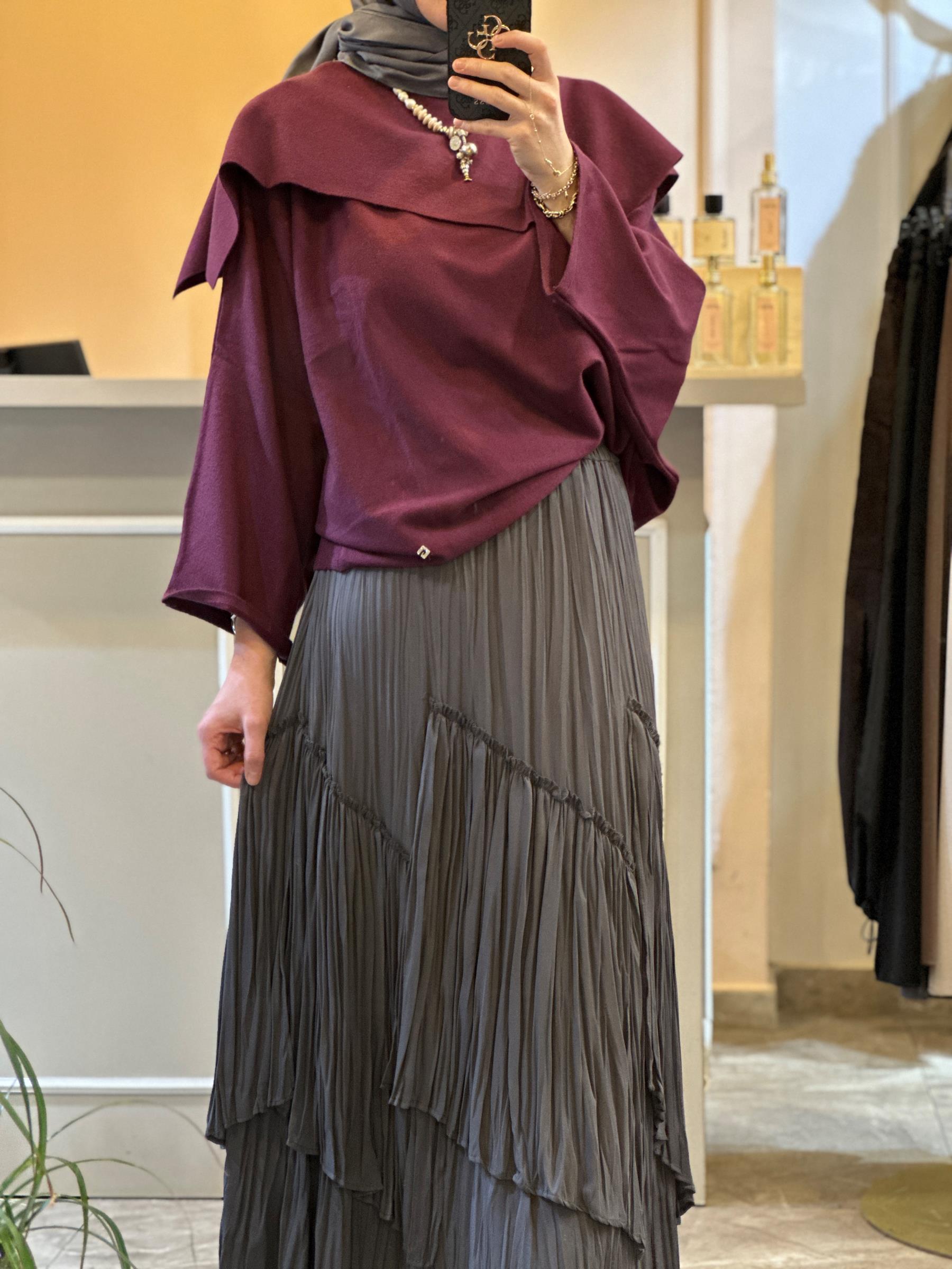 GHİSA ŞAL YAKA DETAYLI TRİKO KAZAK Mürdüm