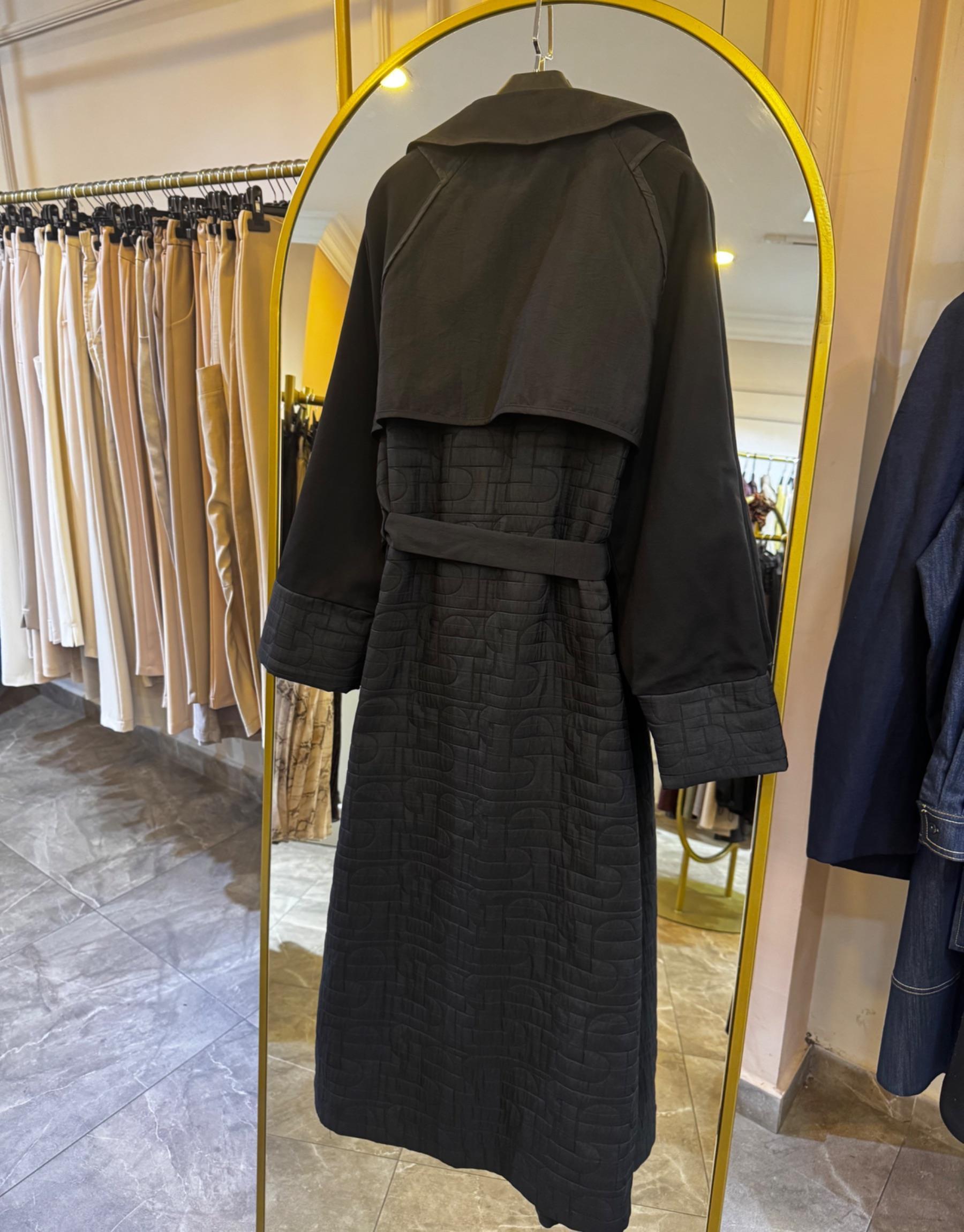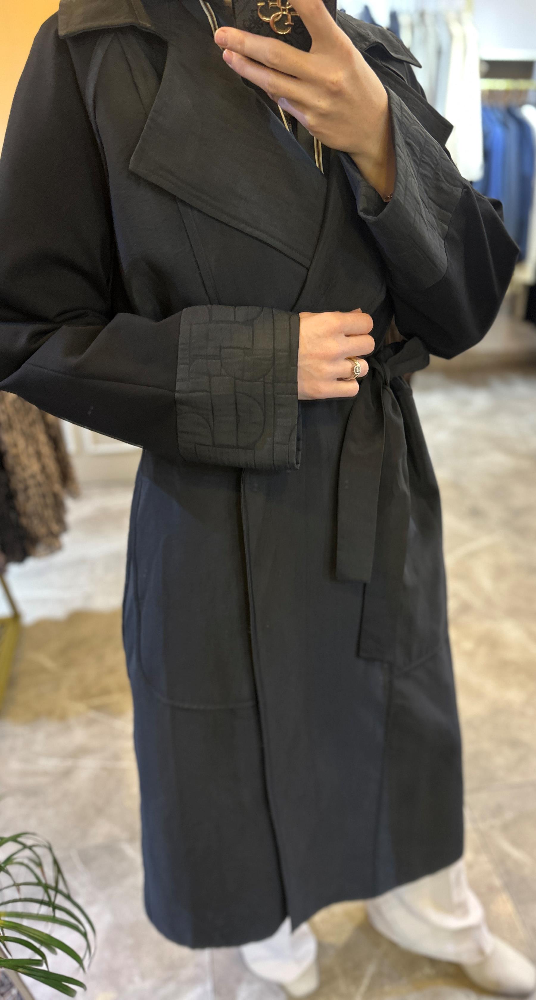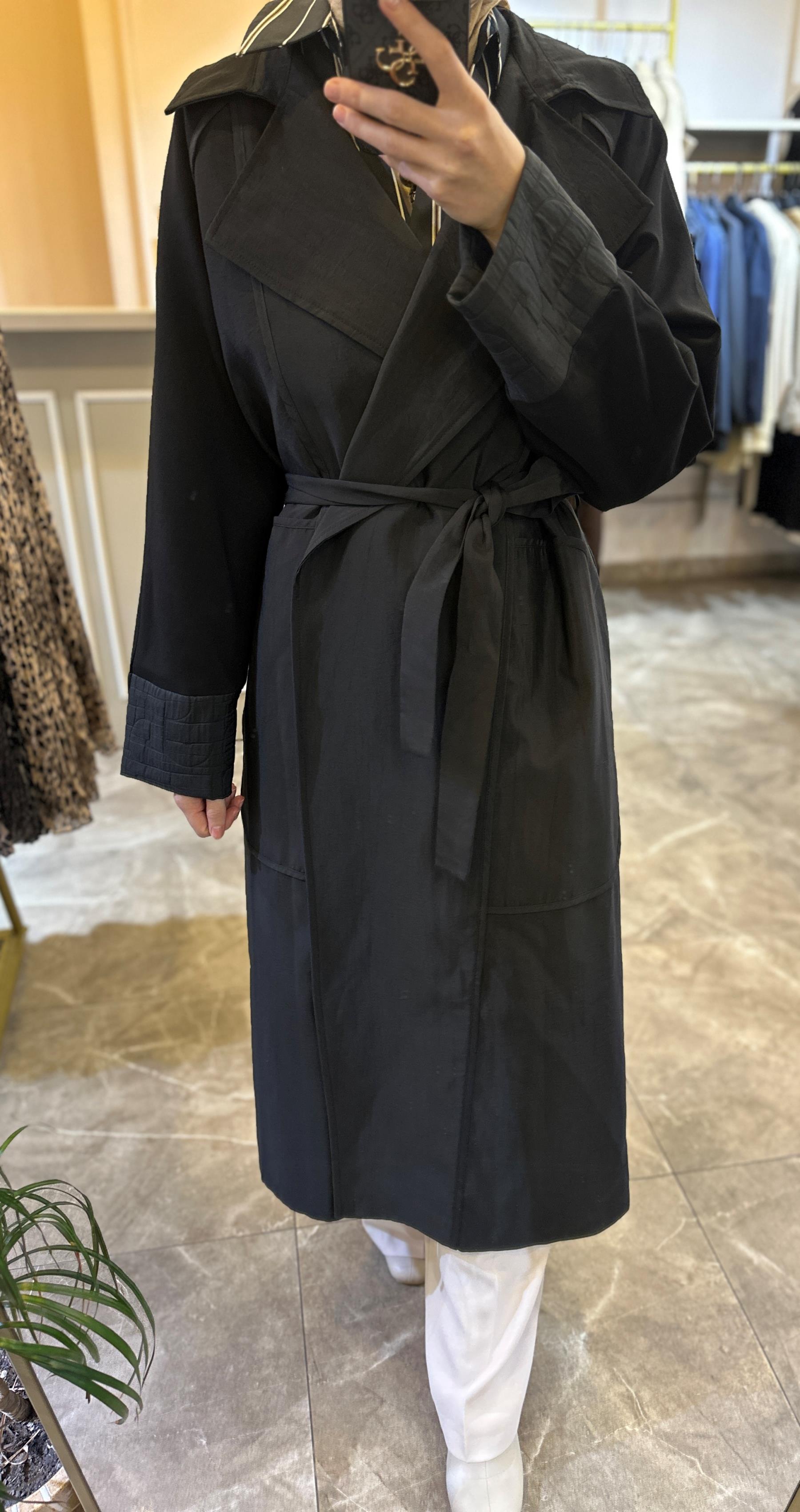 ARKASI KAPİTÖNE DETAYLI BELDEN KEMERLİ TRENÇKOT Siyah