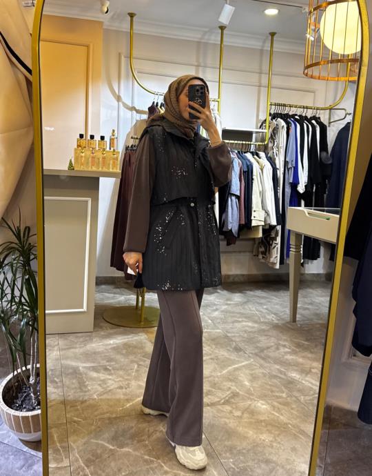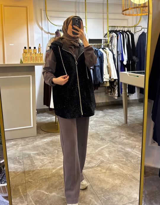 GHISA Kadife Payet İşlemeli Yelek Siyah