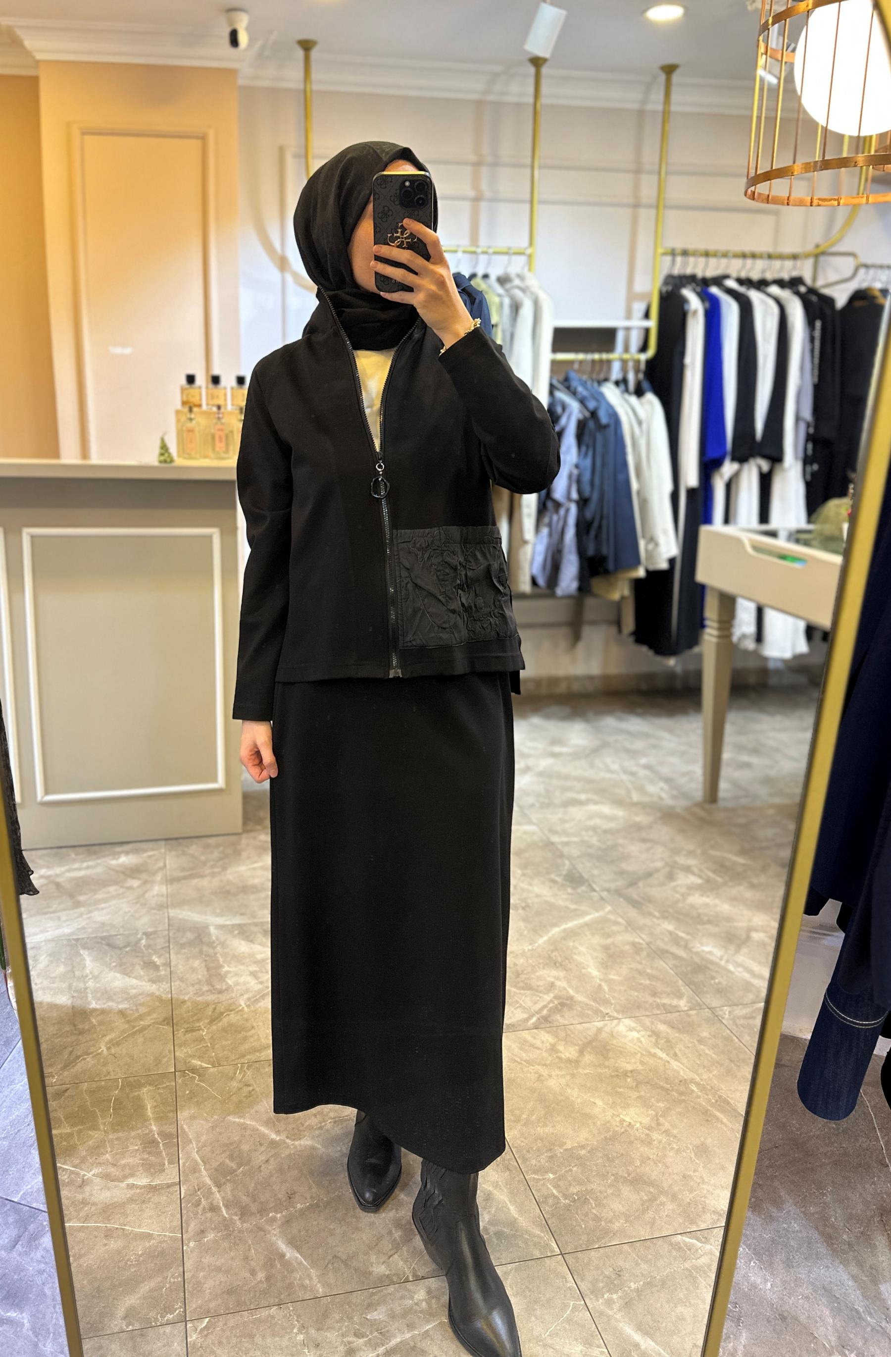 CEREMONY Hakim Yaka Önü Fermuarlı Aksesuar Detaylı Etekli Takım | Ceremony