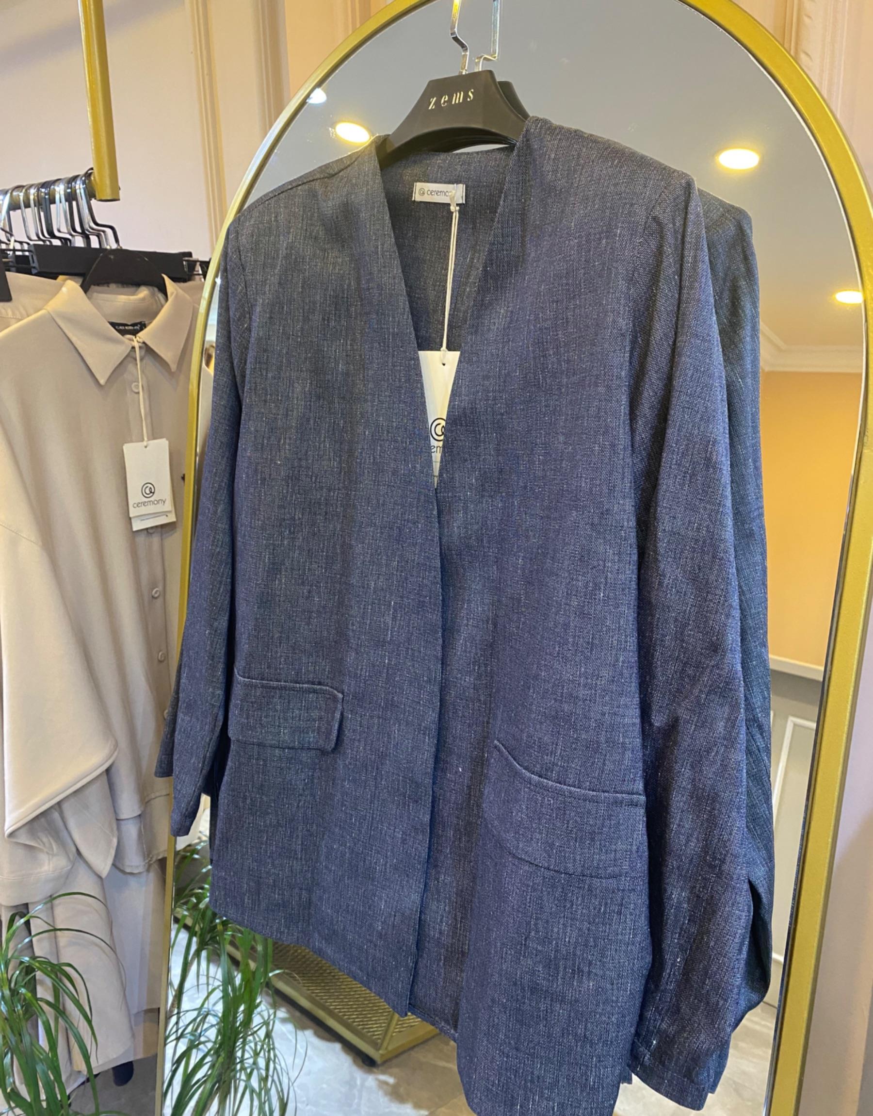 CEREMONY YANDAN BAĞLAMALI DENİM KETEN CEKET | Ceremony
