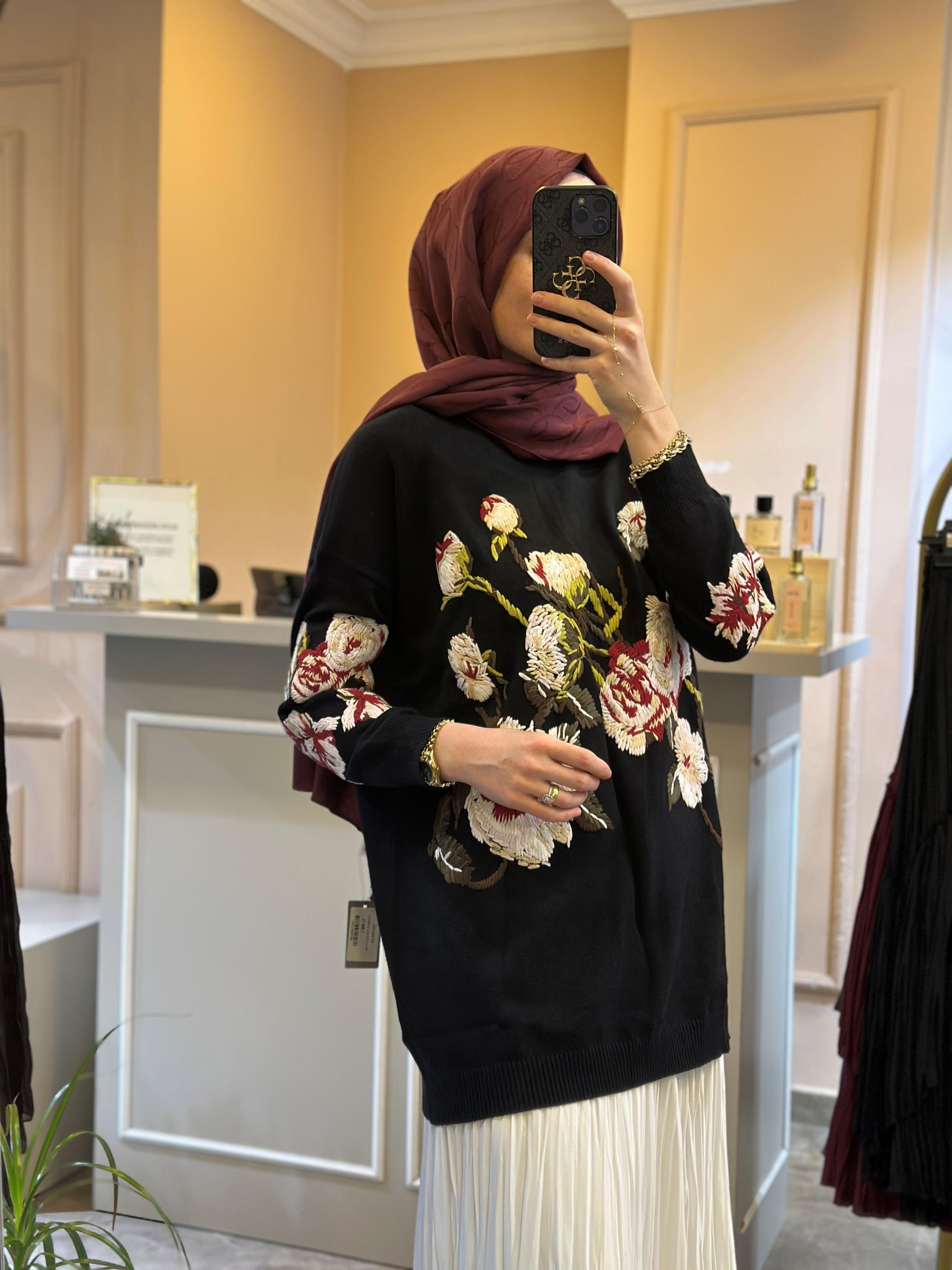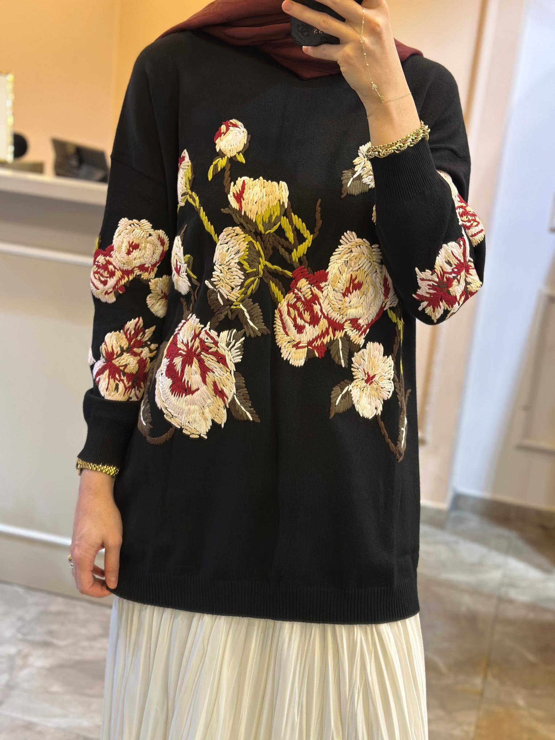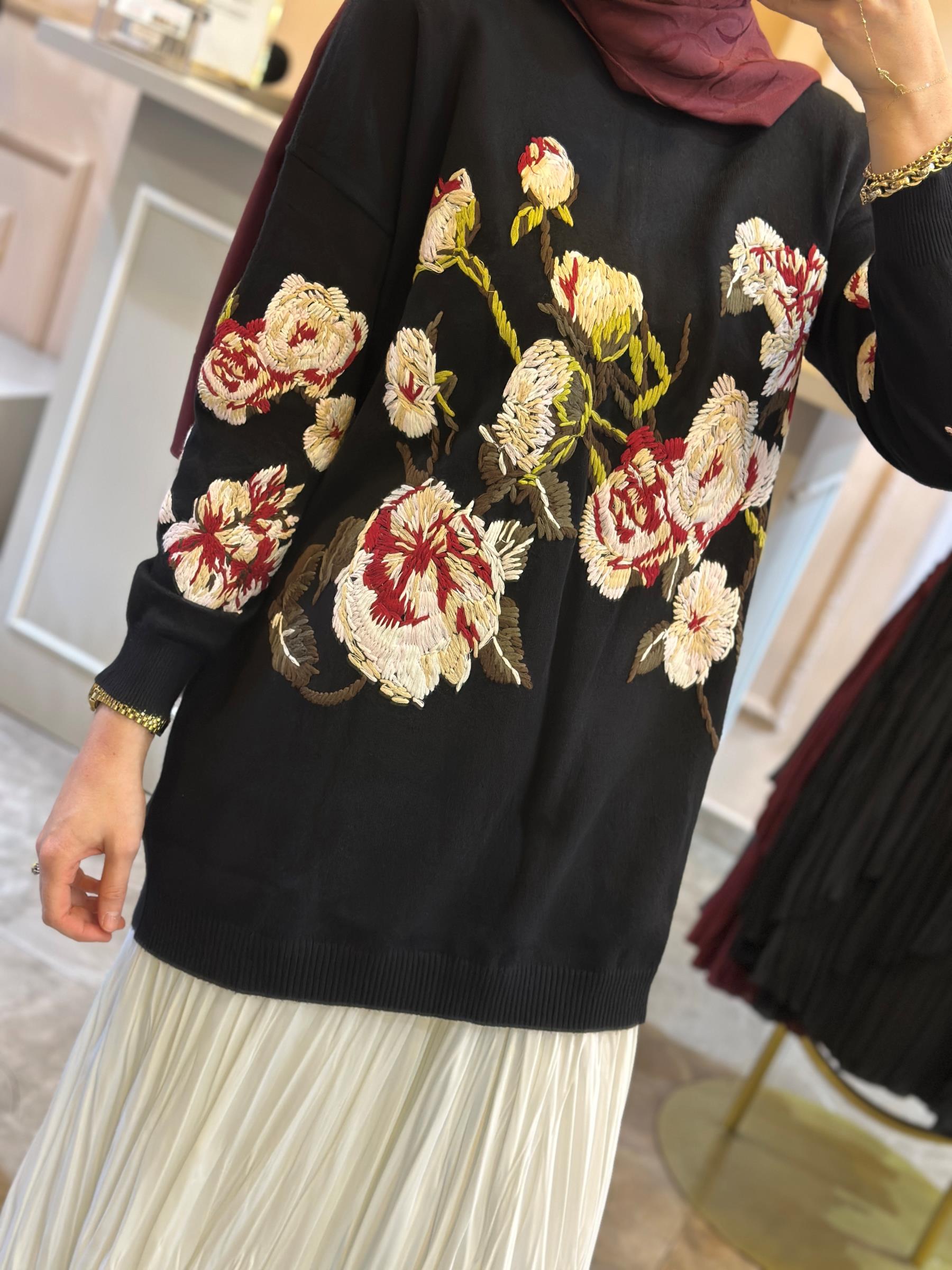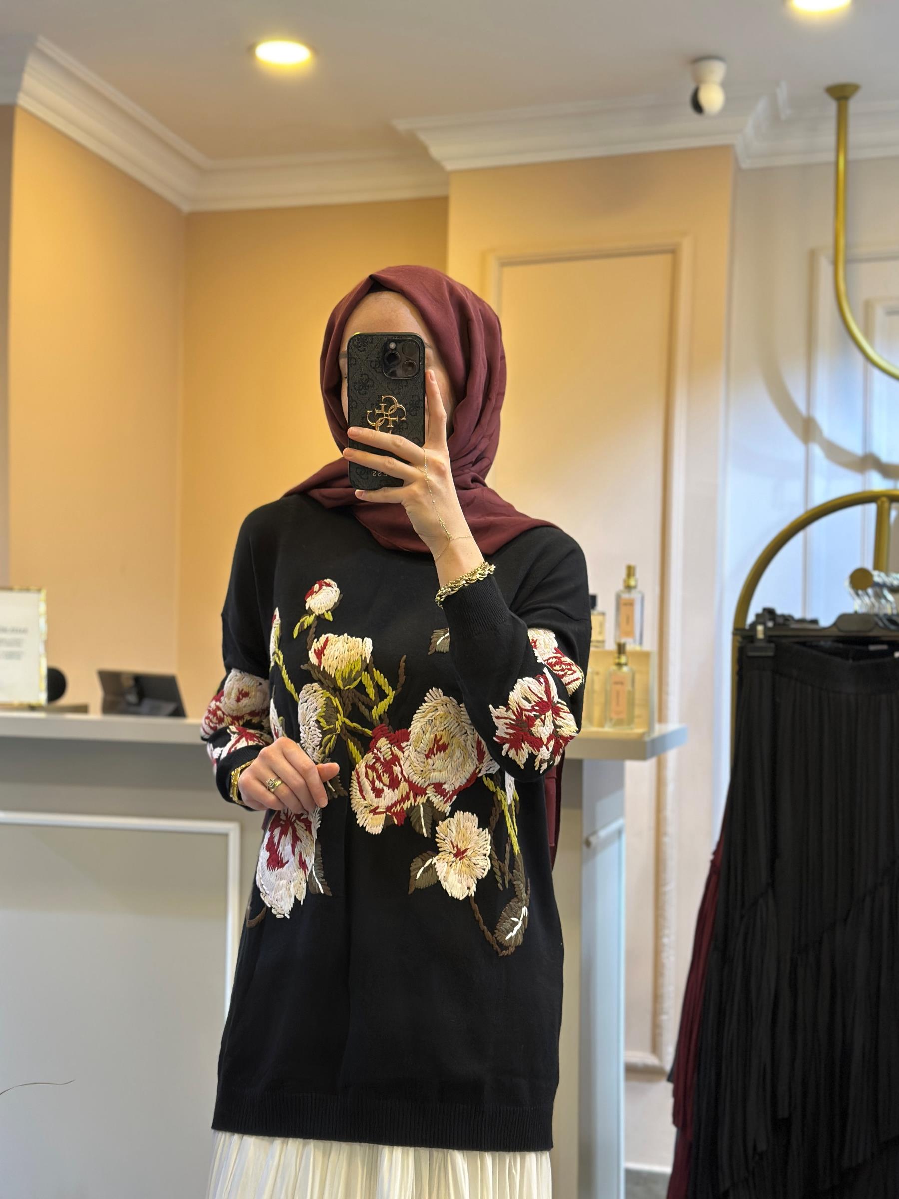 GHİSA GÜL İŞLMELİ TRİKO TUNİK | Ghisa