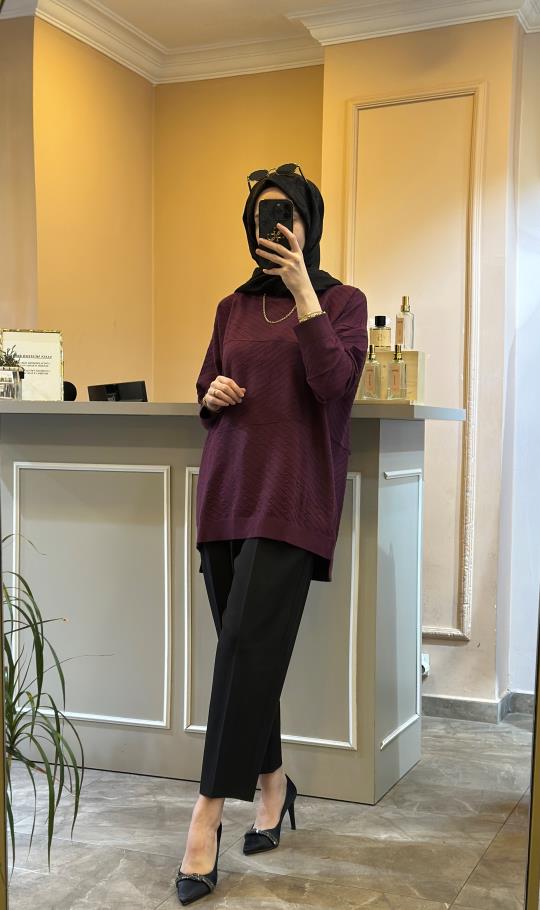 GHİSA BALIKÇI YAKA TRİKO TUNİK Mürdüm