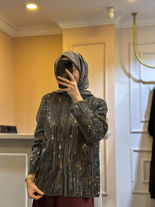 GHİSA PAYETLİ TRİKO HIRKA Antrasit