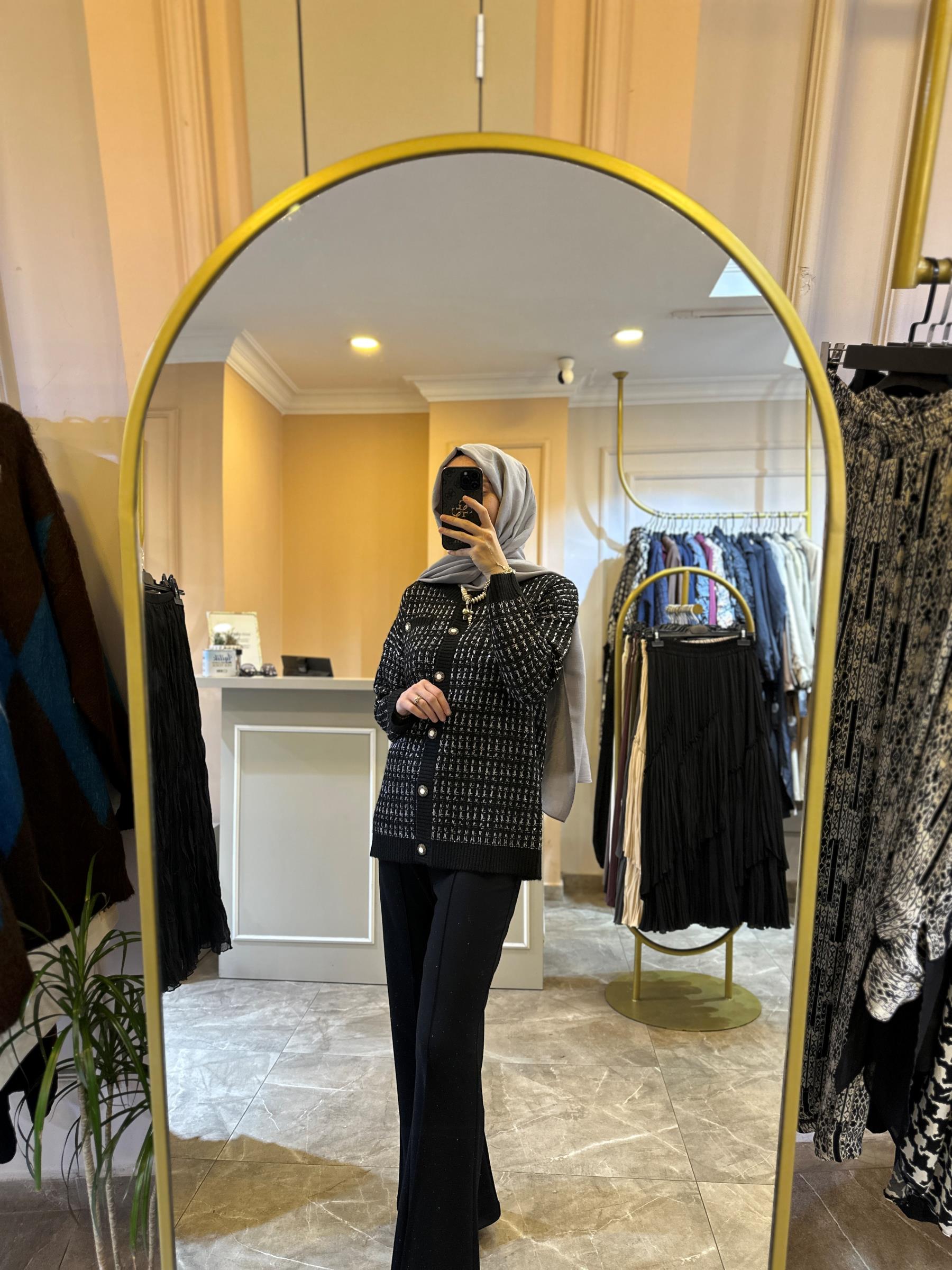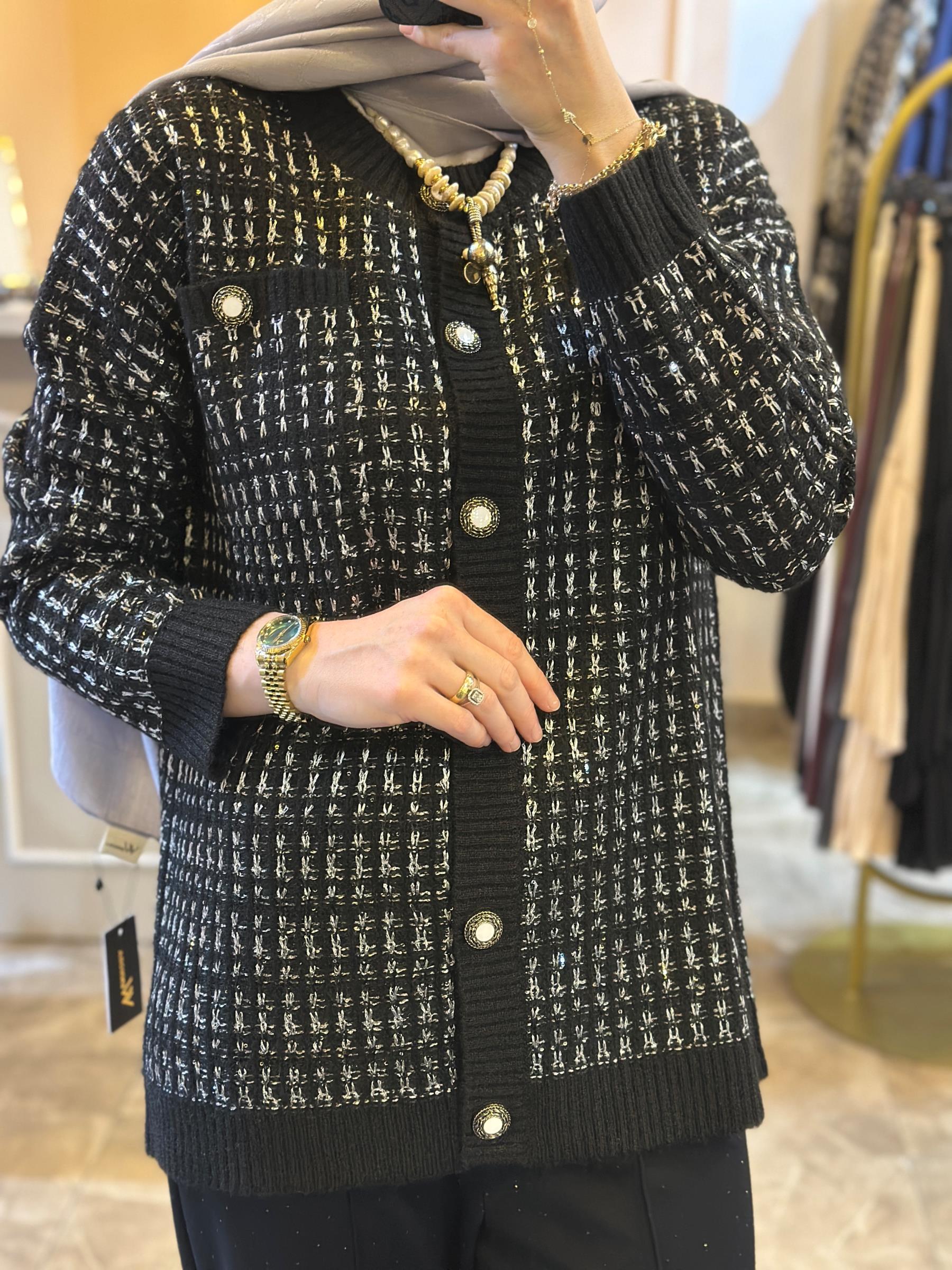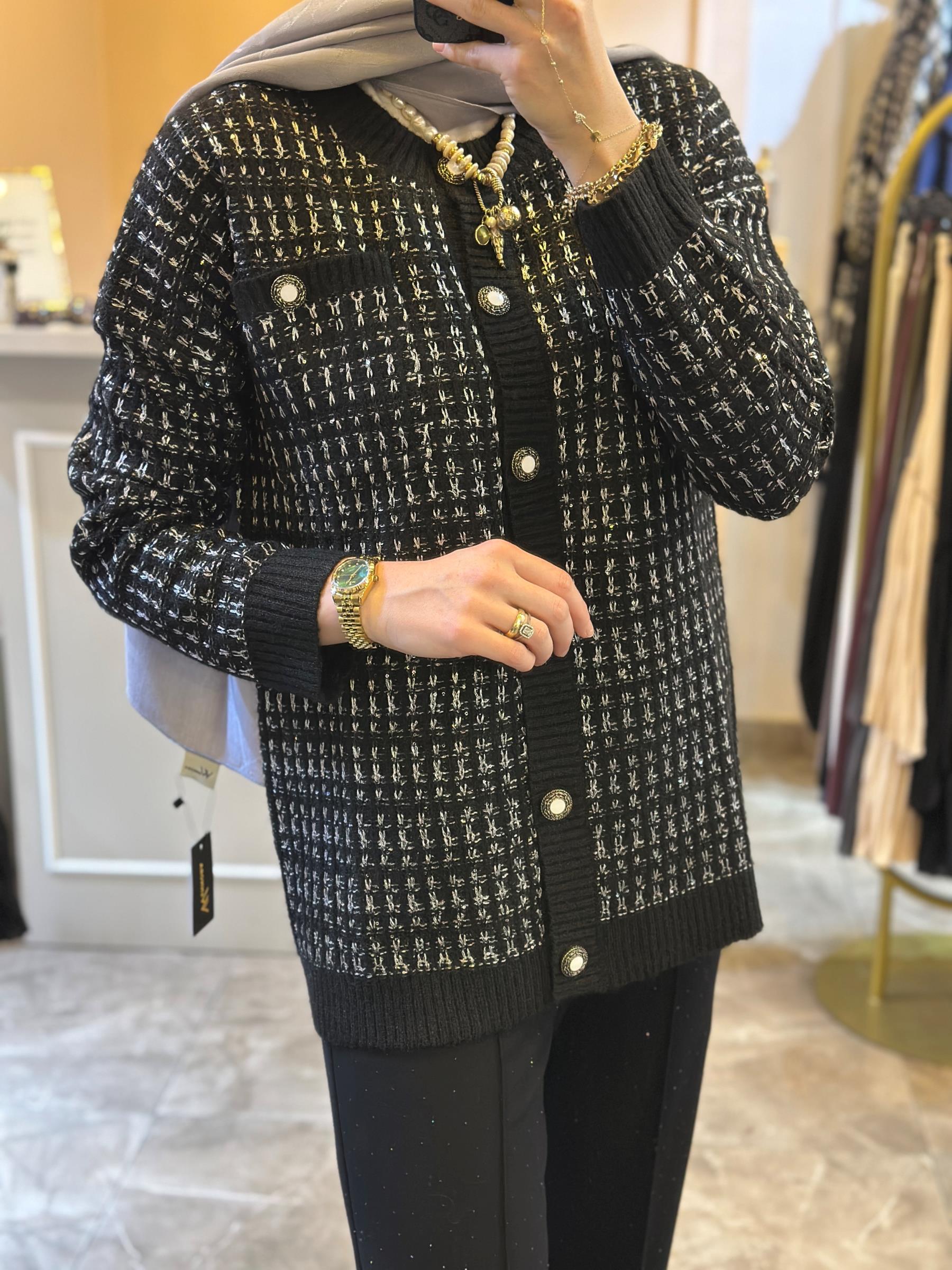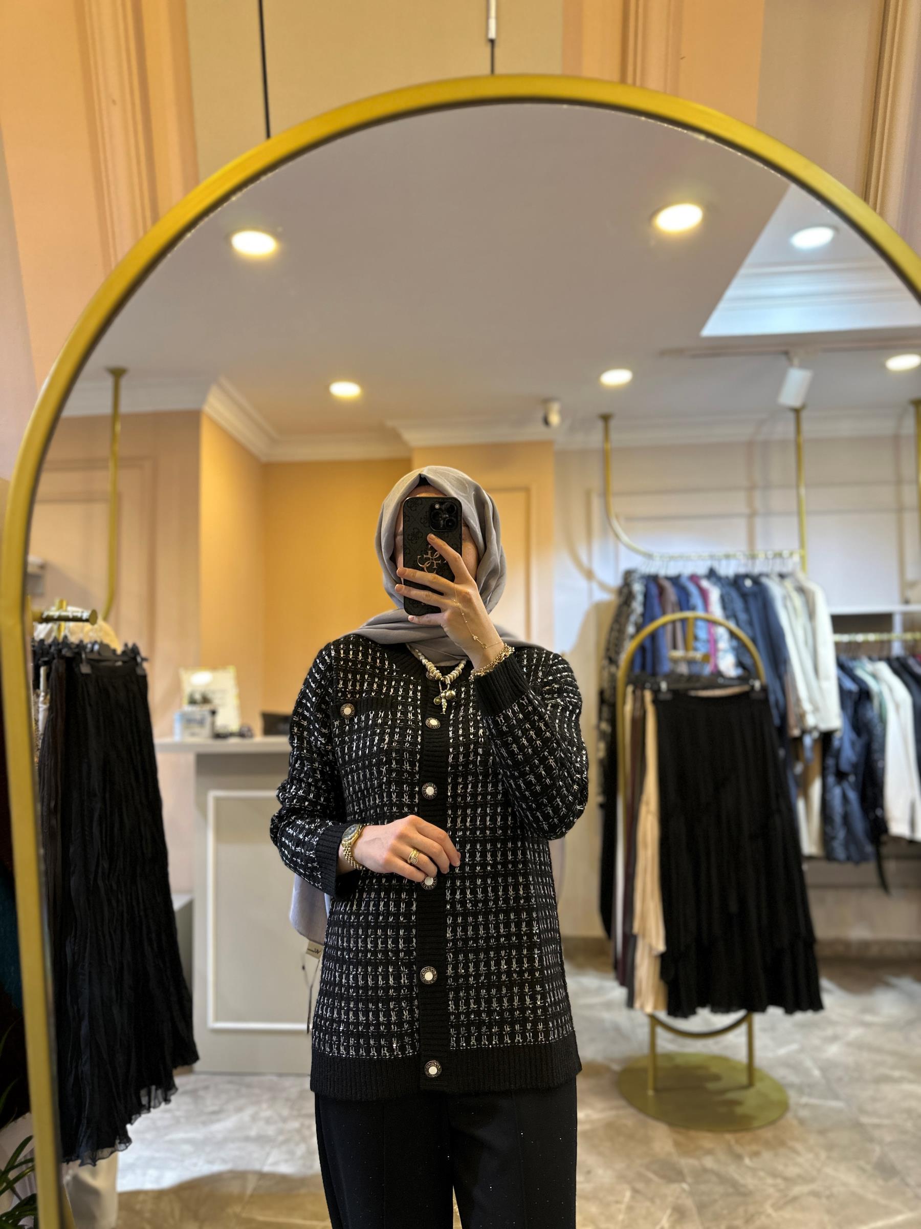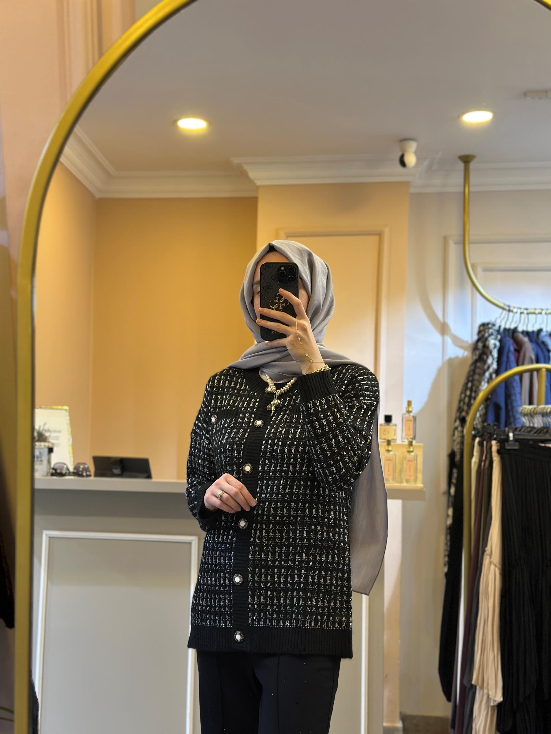 GHİSA Pullu Bisiklet Yaka Gümüş İp Geçişli İthal Triko Hırka | Ghisa