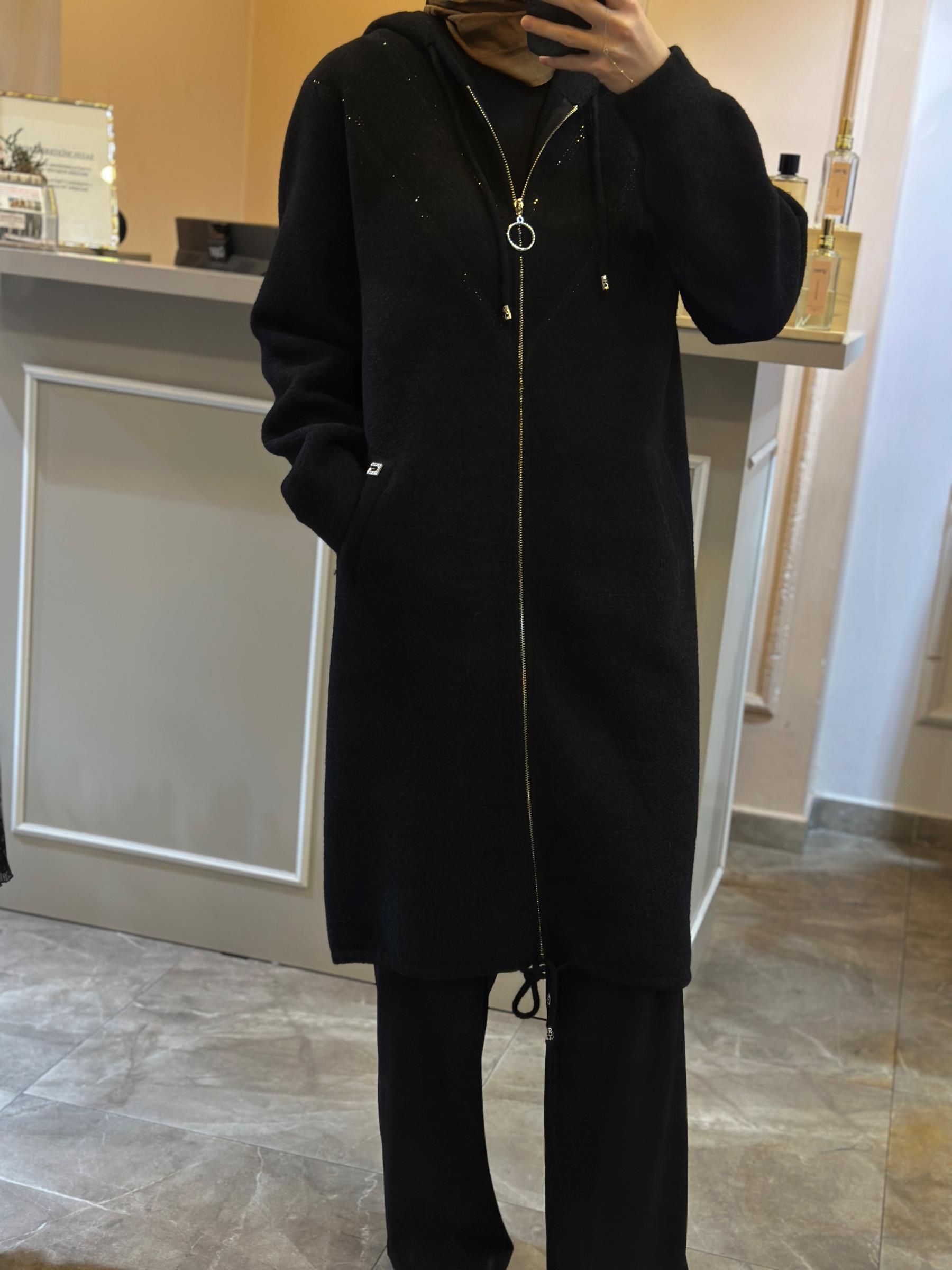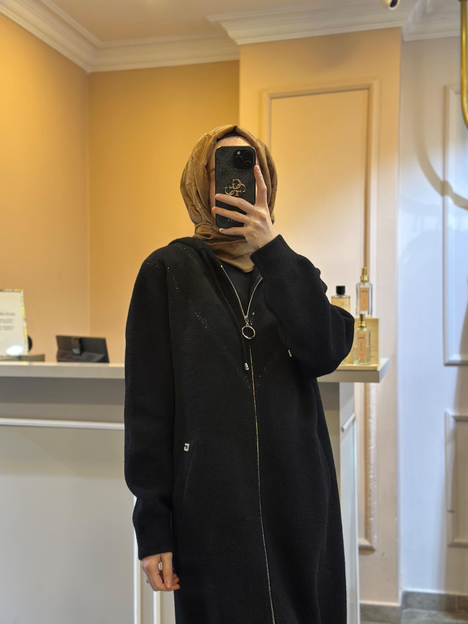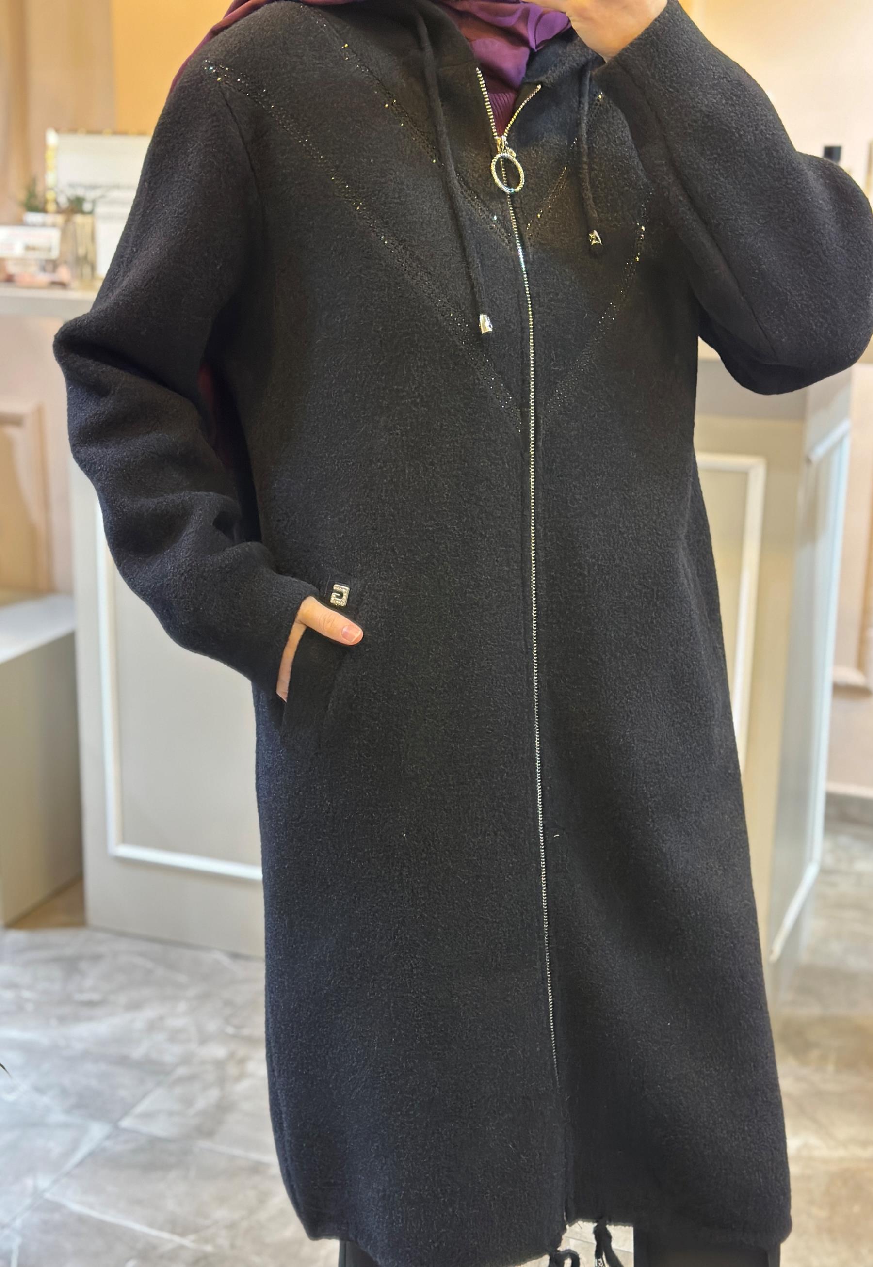 GHİSA TAŞ İŞLEMELİ FERMUAR VE ŞAPKA DETAYLI KABAN | Ghisa