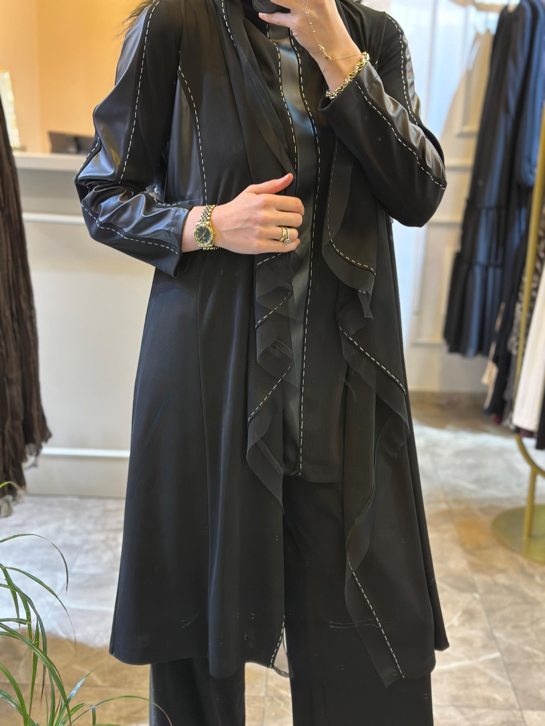 GHİSA YAKASI KÜRK VE DERİ DETAYLI ÜÇLÜ TAKIM | Ghisa