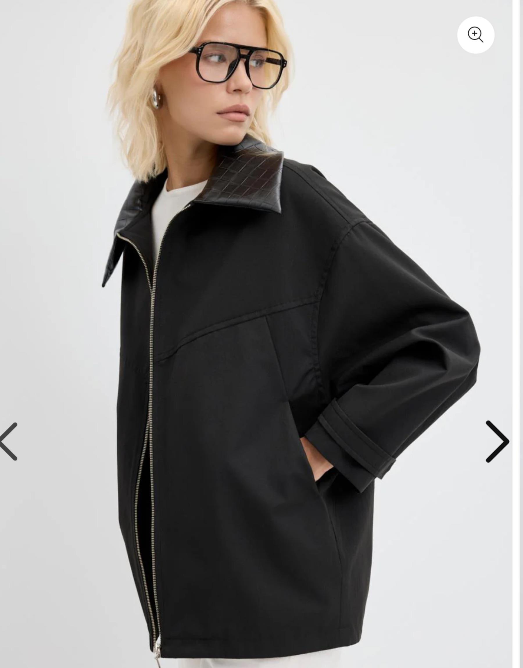 KADRİYE BAŞTÜRK Fermuarlı Deri Yakalı Ceket | Kadriye basturk